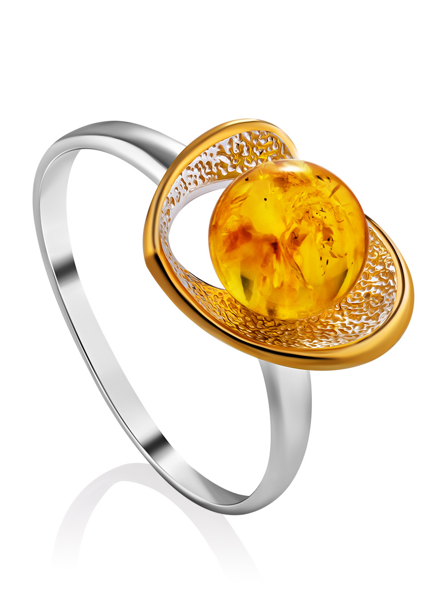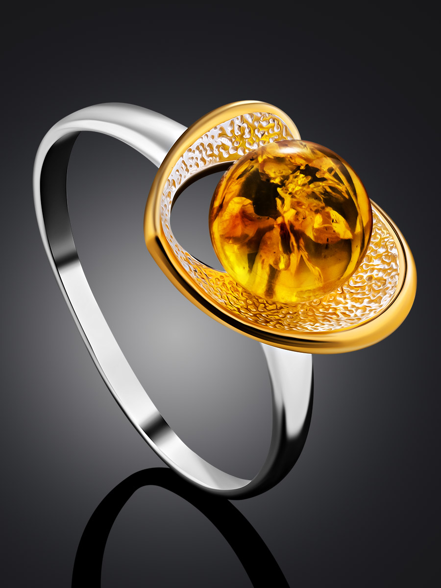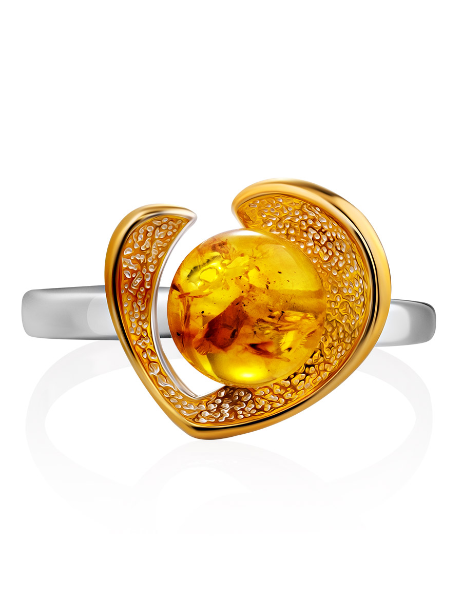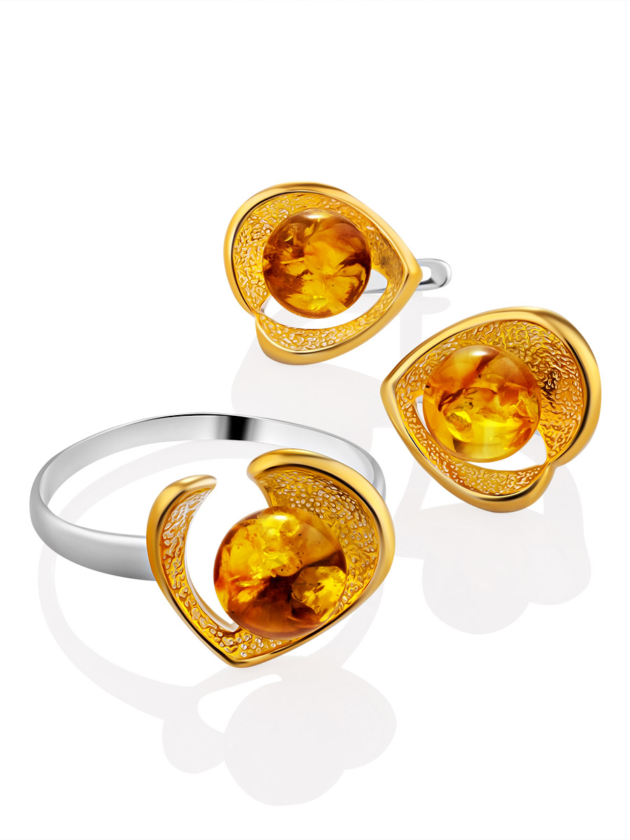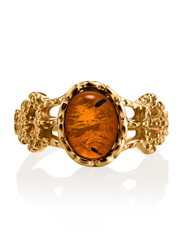 Нежное золочёное кольцо, украшенное янтарём «Скарлетт»