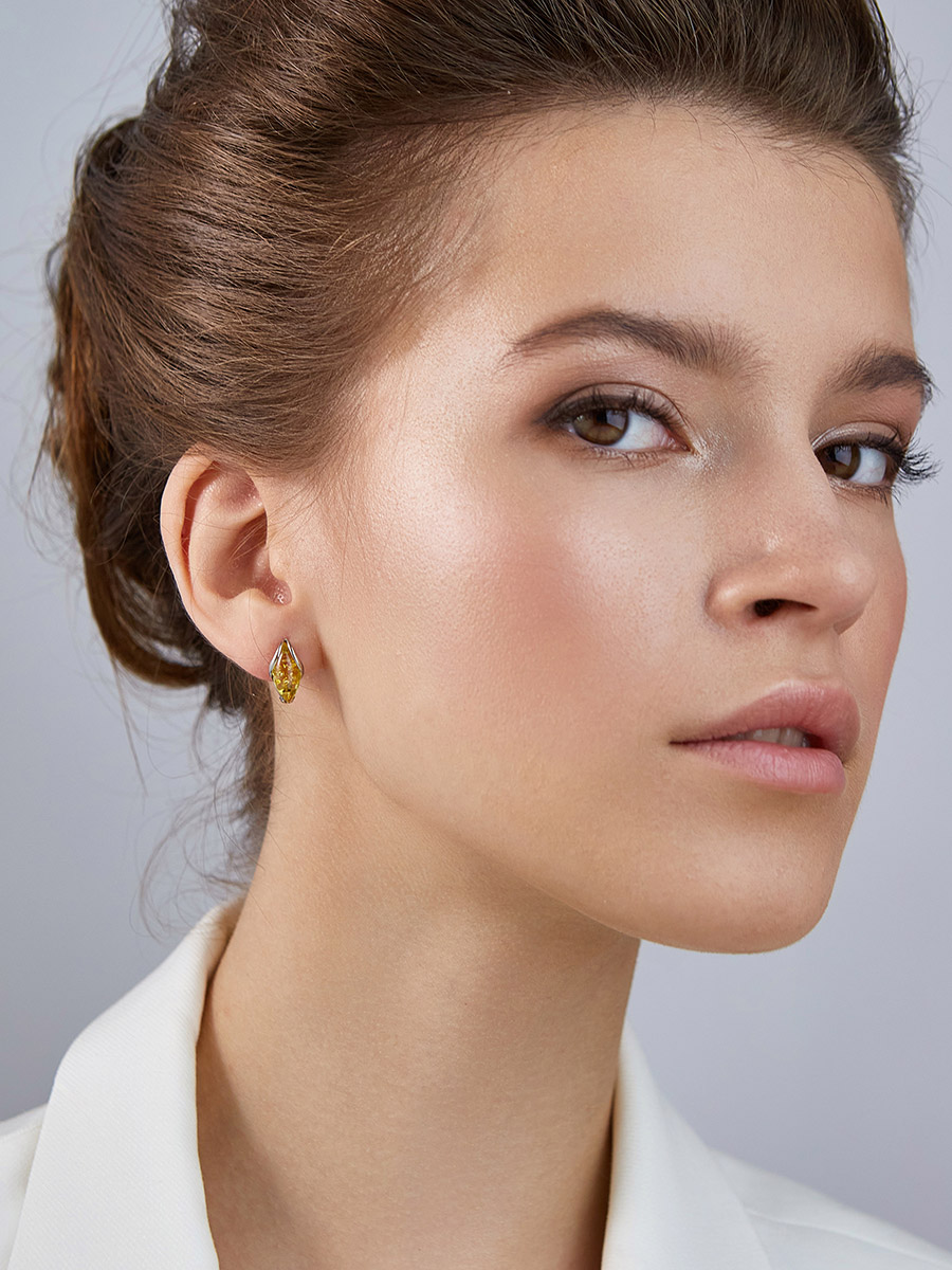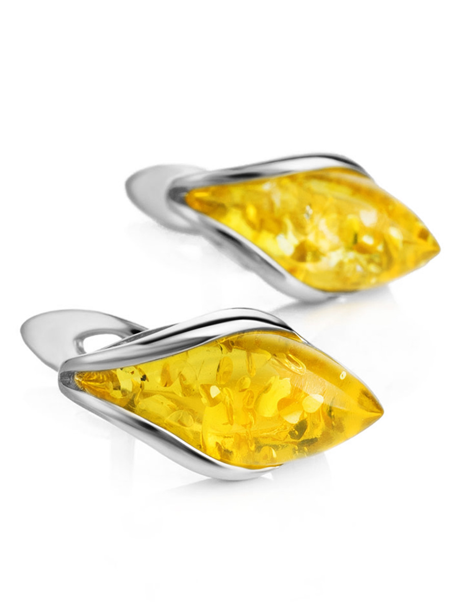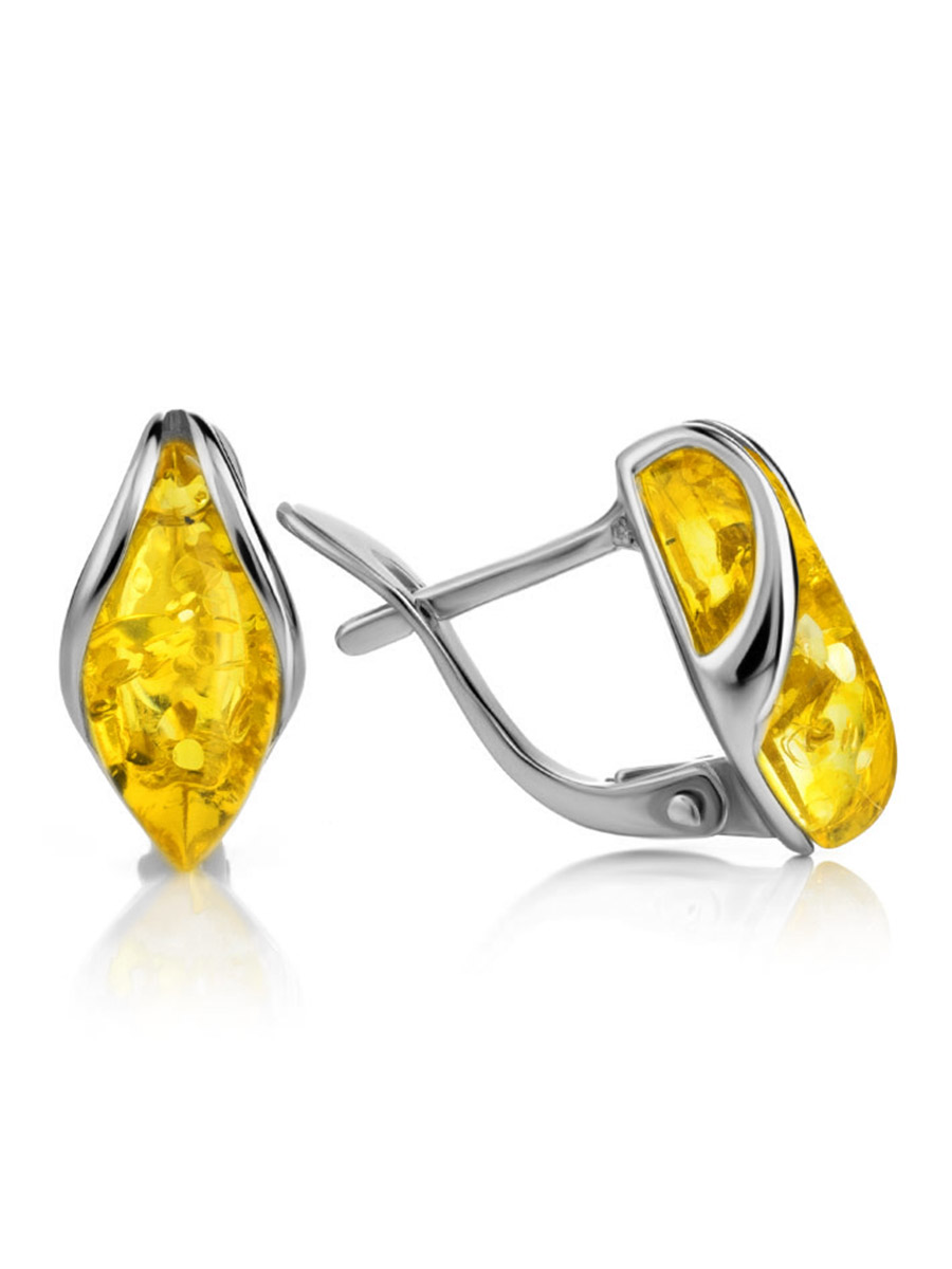 Нежные миниатюрные серьги из лимонного янтаря «Подснежник»