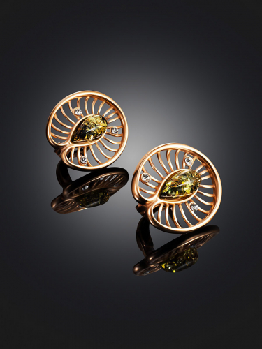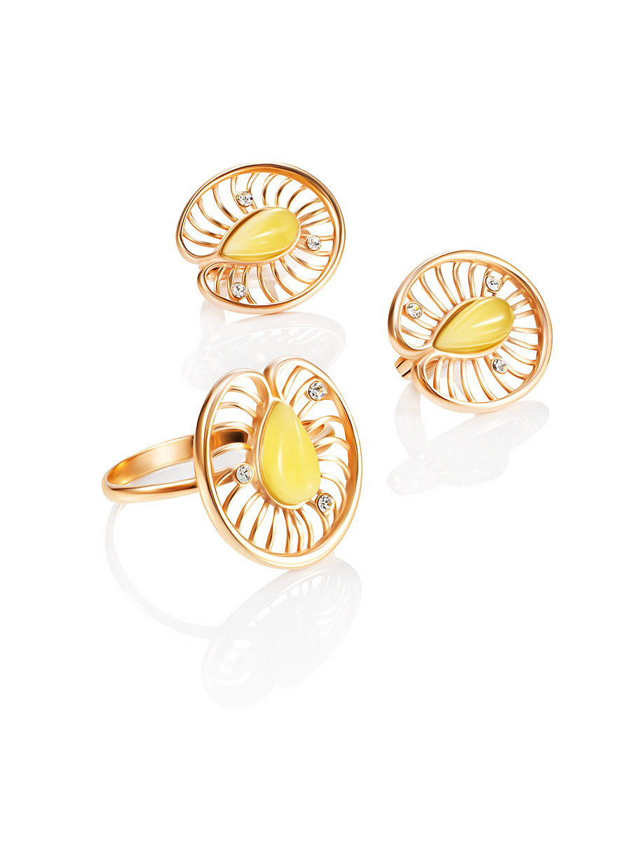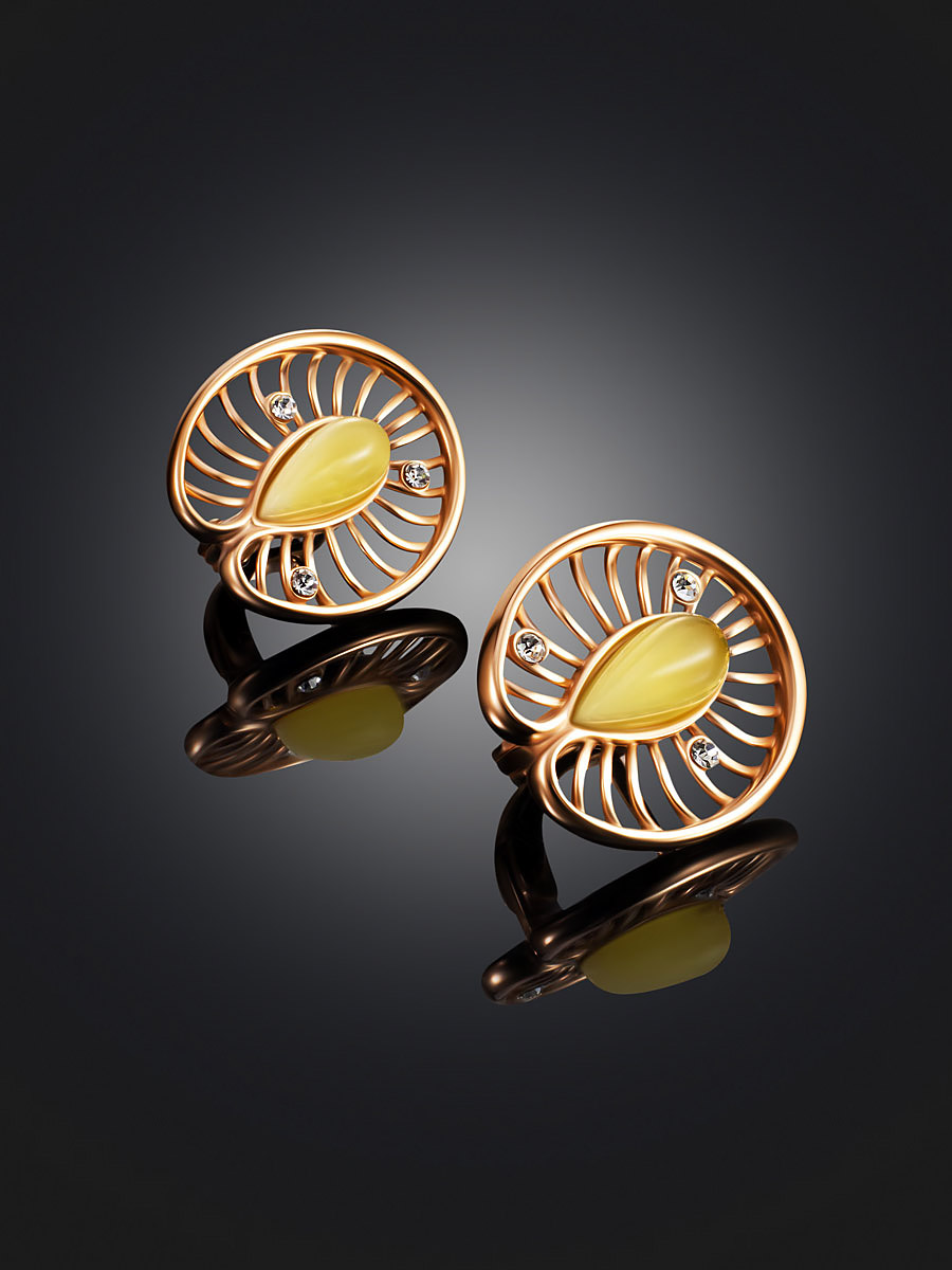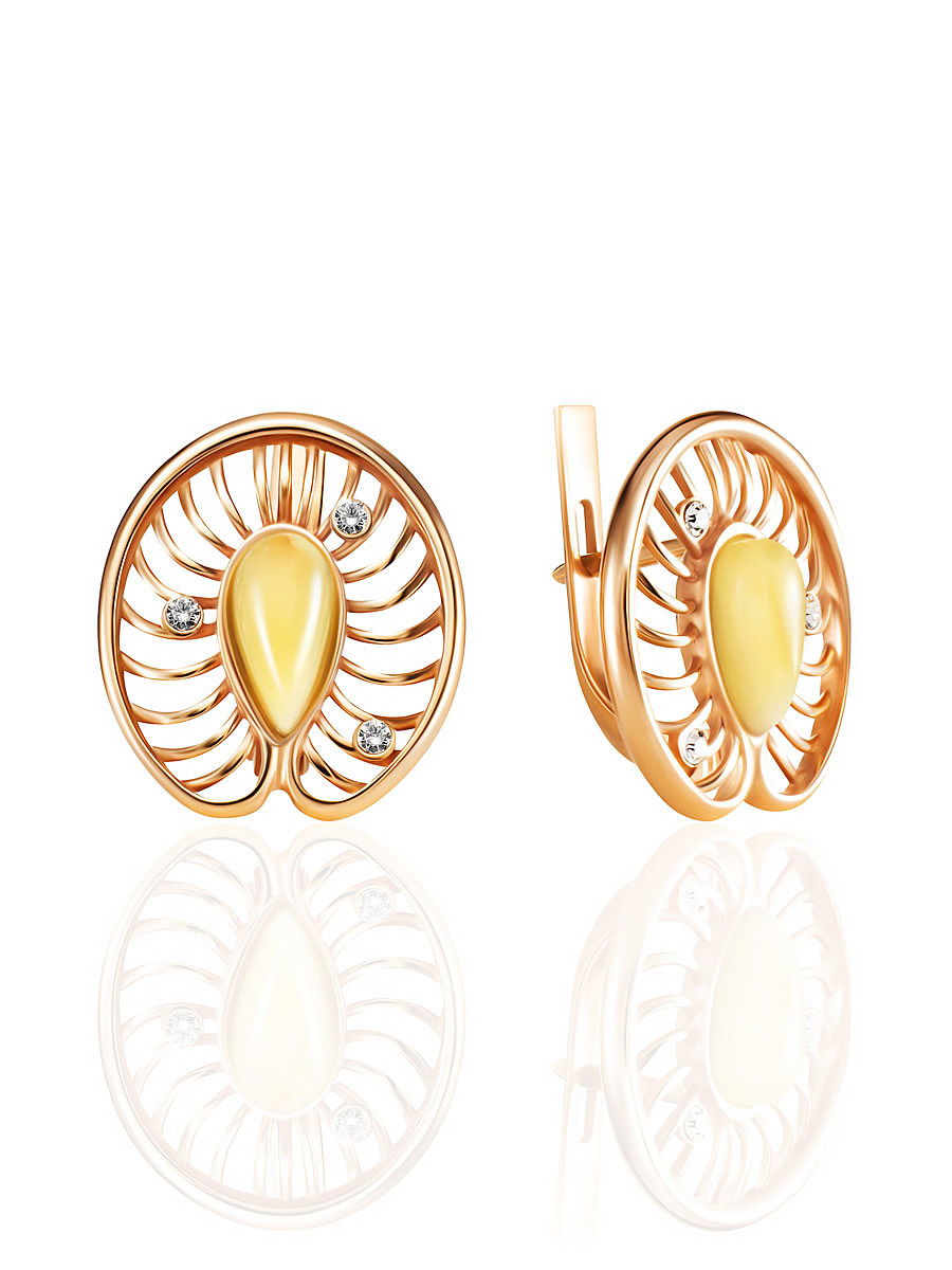 Нежные позолоченные серьги с янтарём медового оттенка «Амелия»