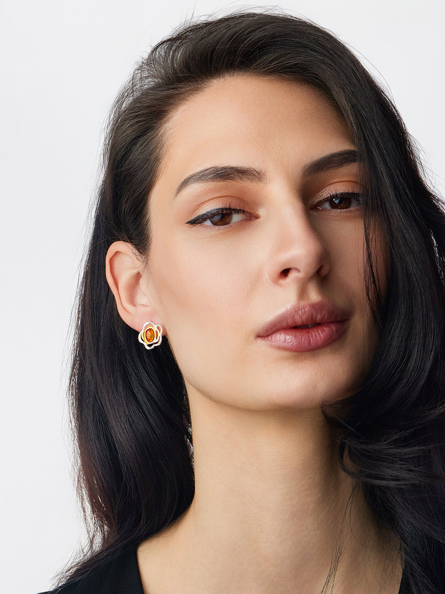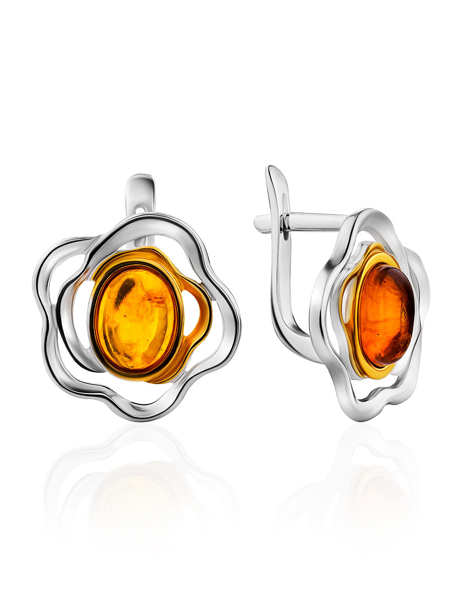 Нежные серьги из натурального янтаря коньячного цвета «Ромашка»