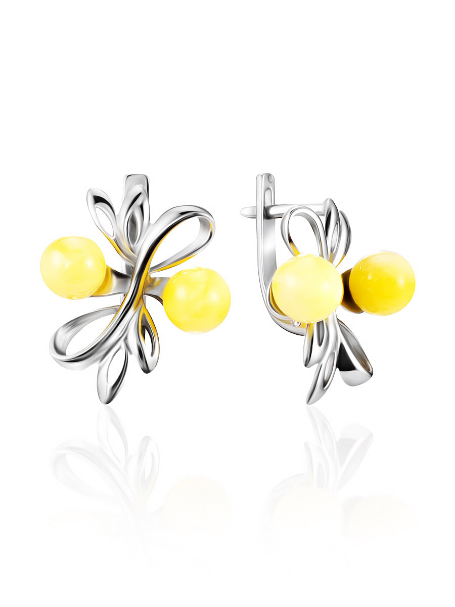 Нежные серьги с натуральным янтарём медового цвета «Галатея»