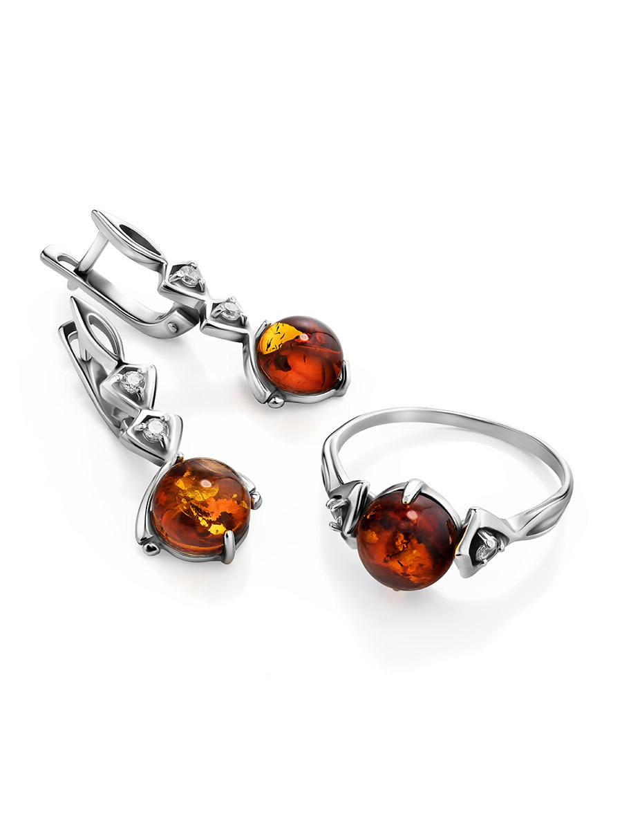 Рекомендуем вам для создания завершённого образа также приобрести кольцо «Самбия» с натуральным янтарём коньячного цвета и цирконами._x000D_