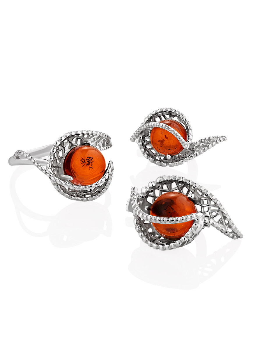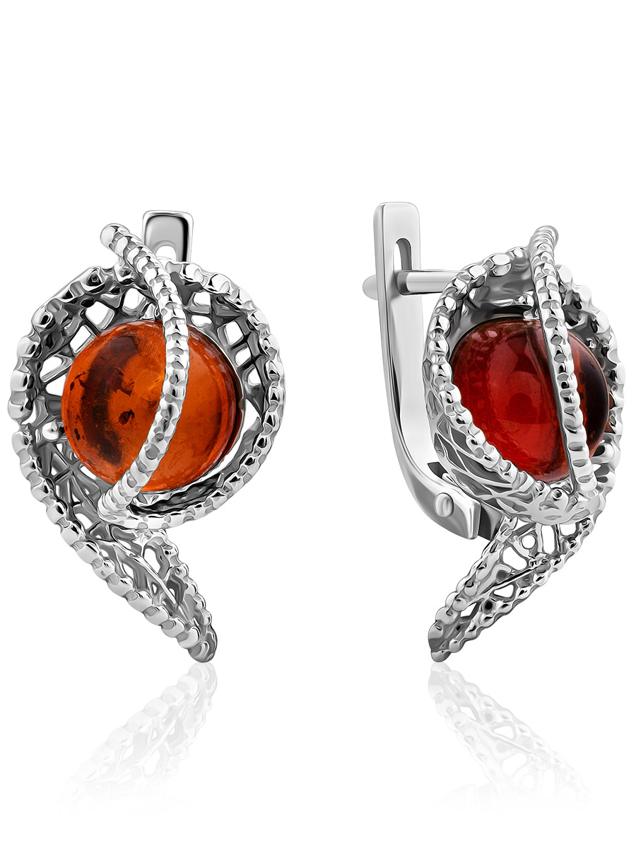 Нежные серьги «Венера» из янтаря коньячного цвета
