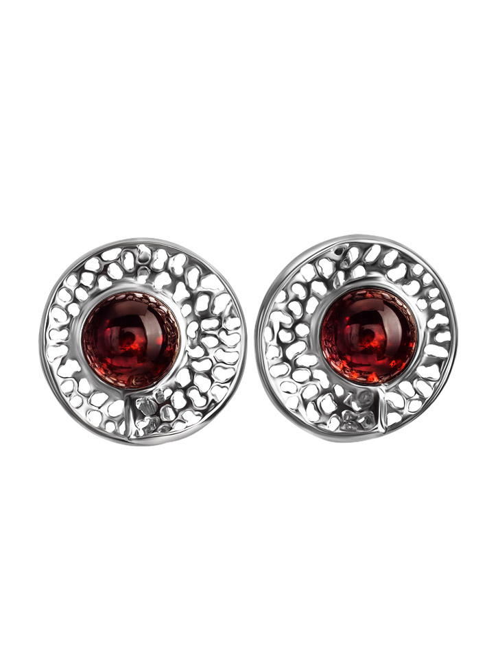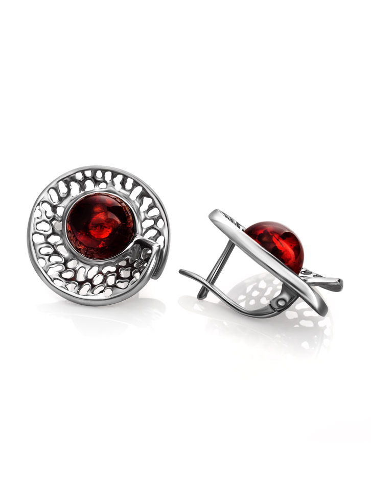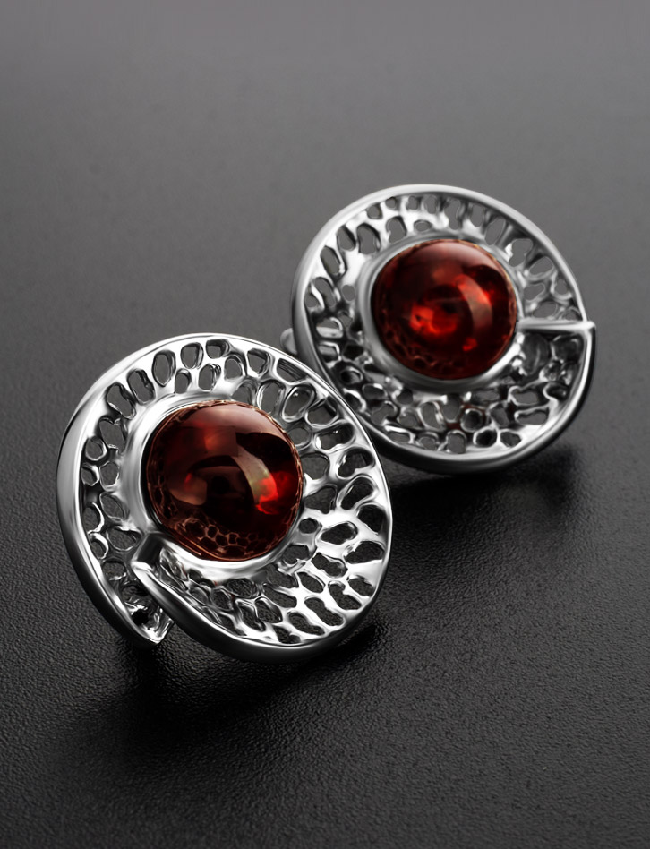 Нежные серьги «Венера» со вставкой из янтаря вишневого цвета