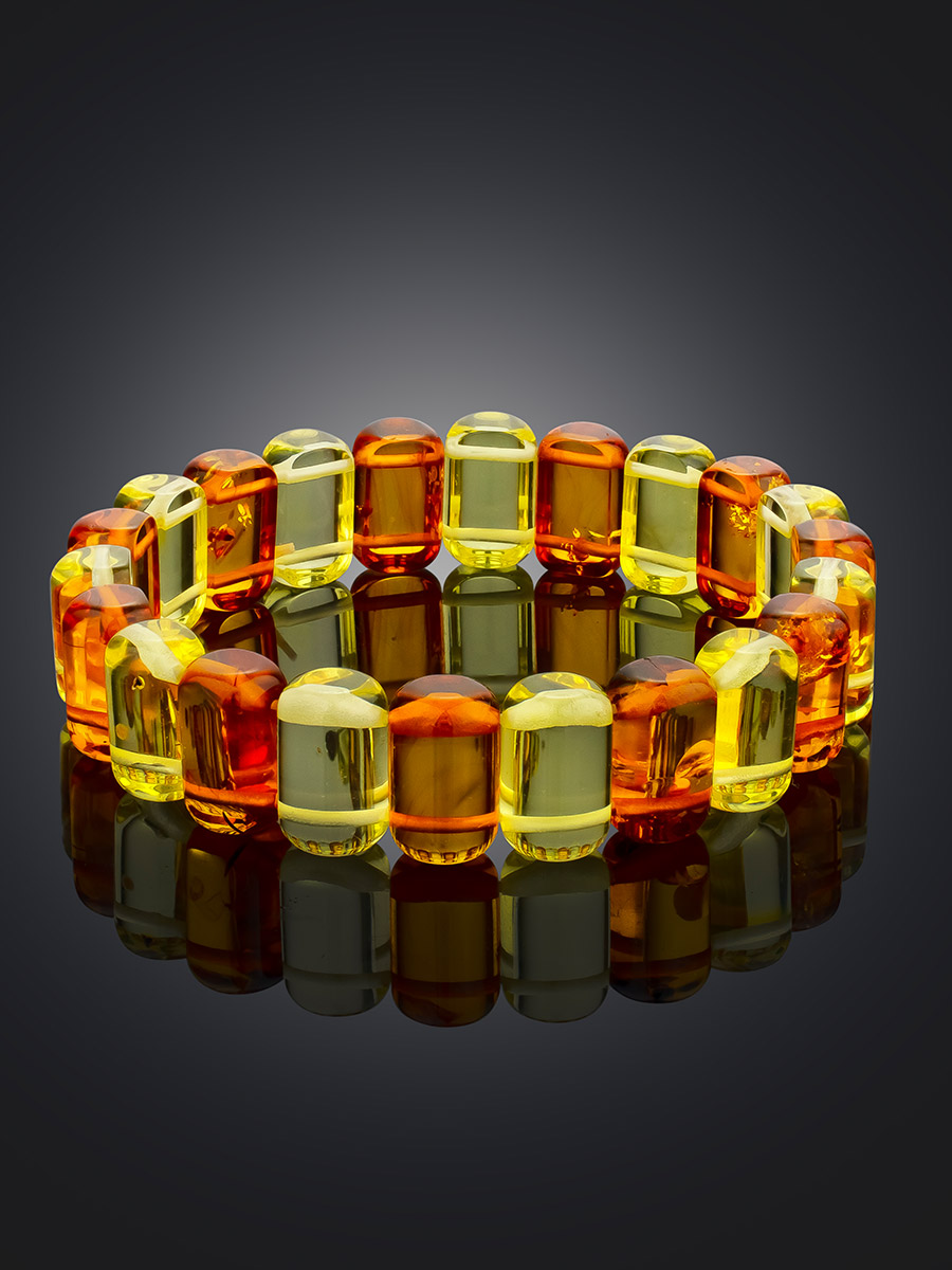 Нежный браслет из янтаря тёплых оттенков «Бочонки лимонные и коньячные»