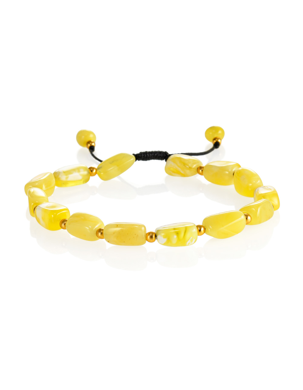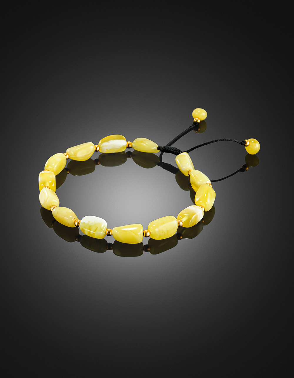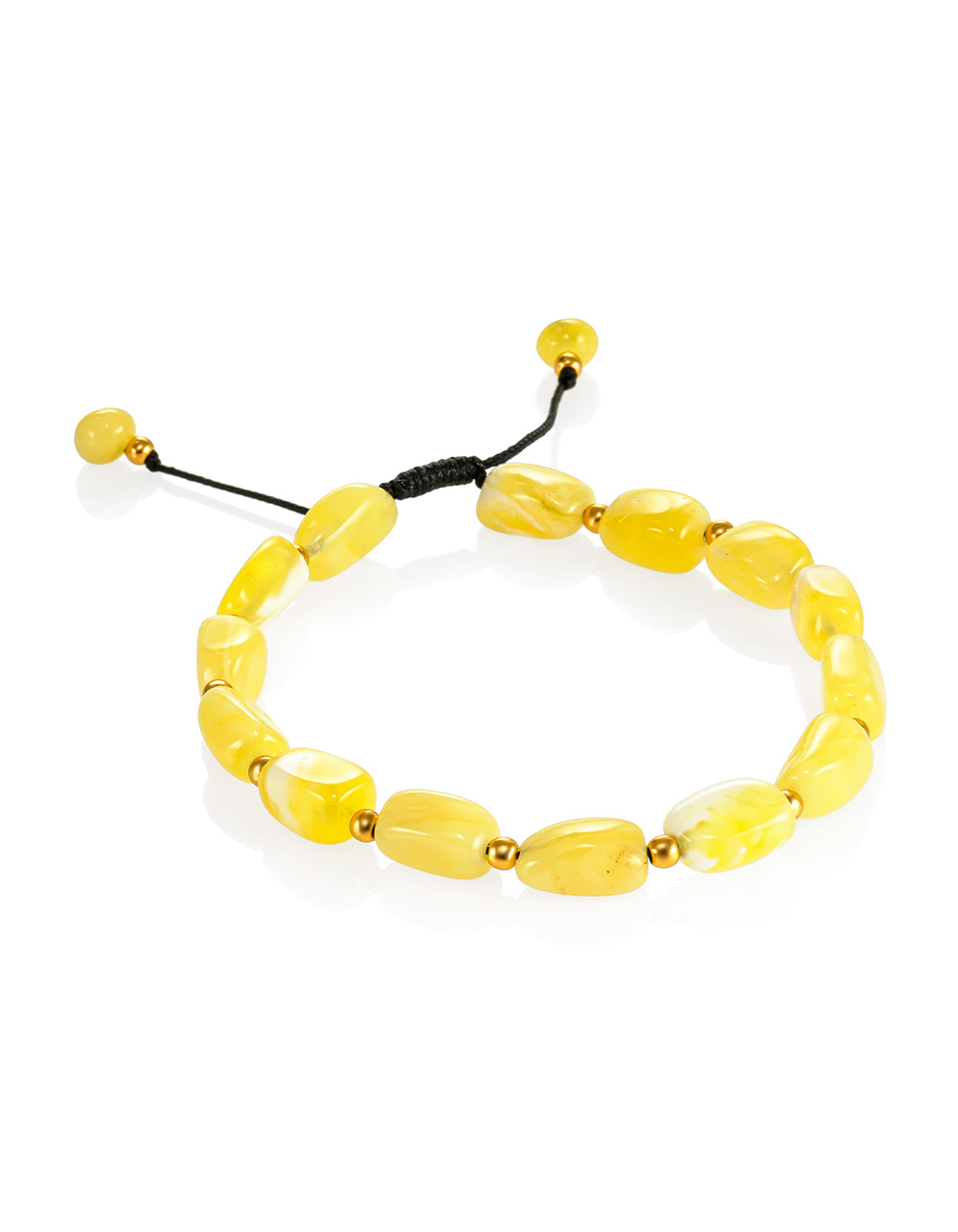 Нежный браслет в эко-стиле из натурального молочно-медового янтаря