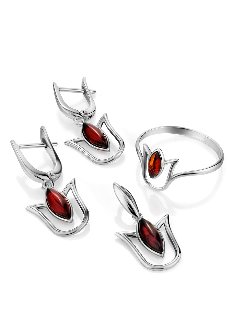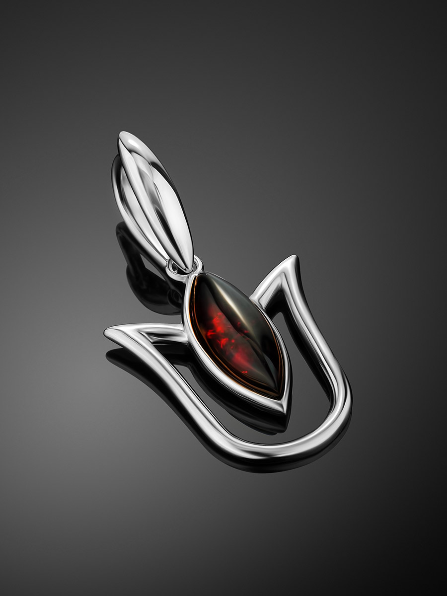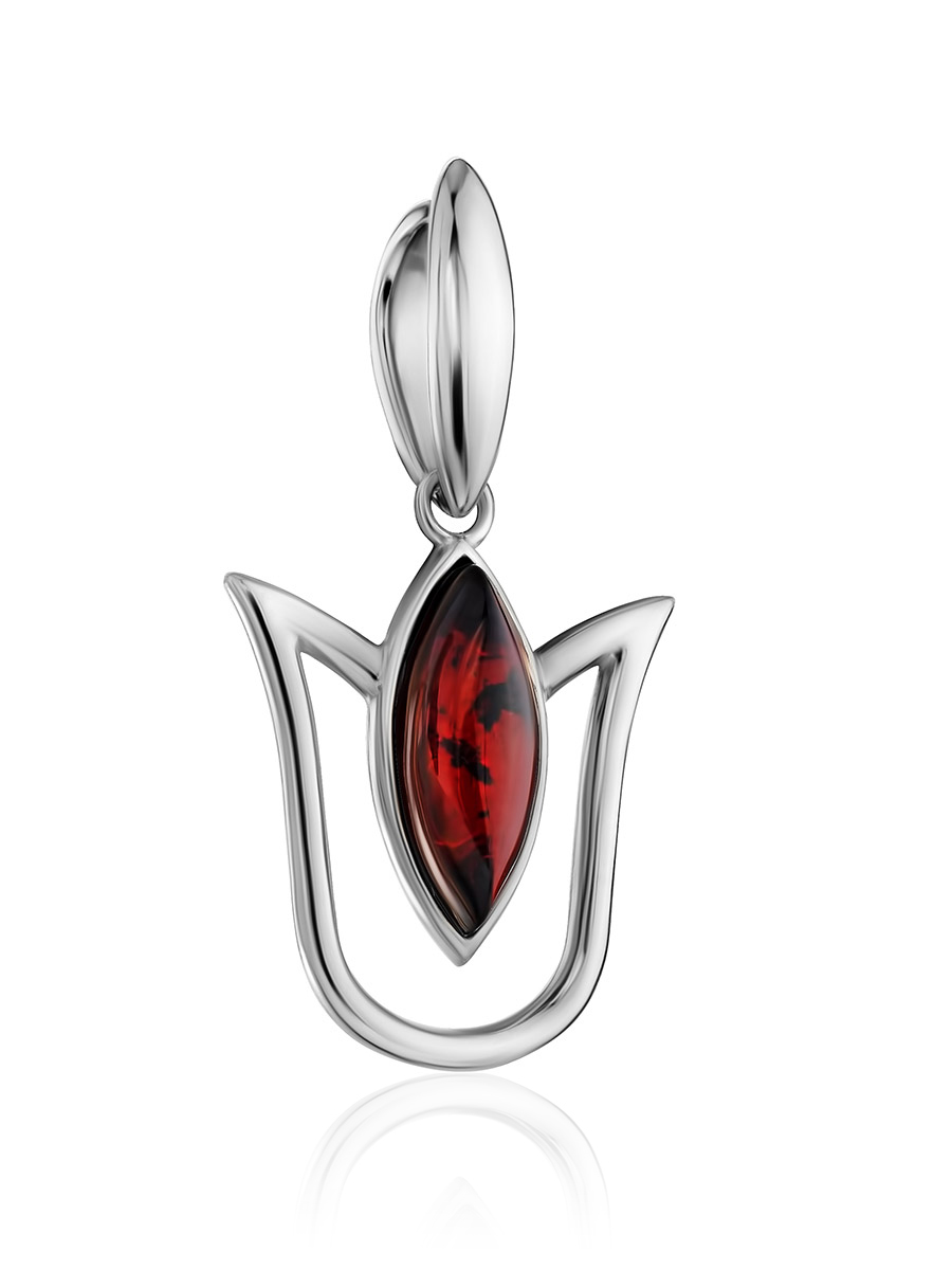 Нежный кулон «Тюльпан» с янтарём коньячного цвета