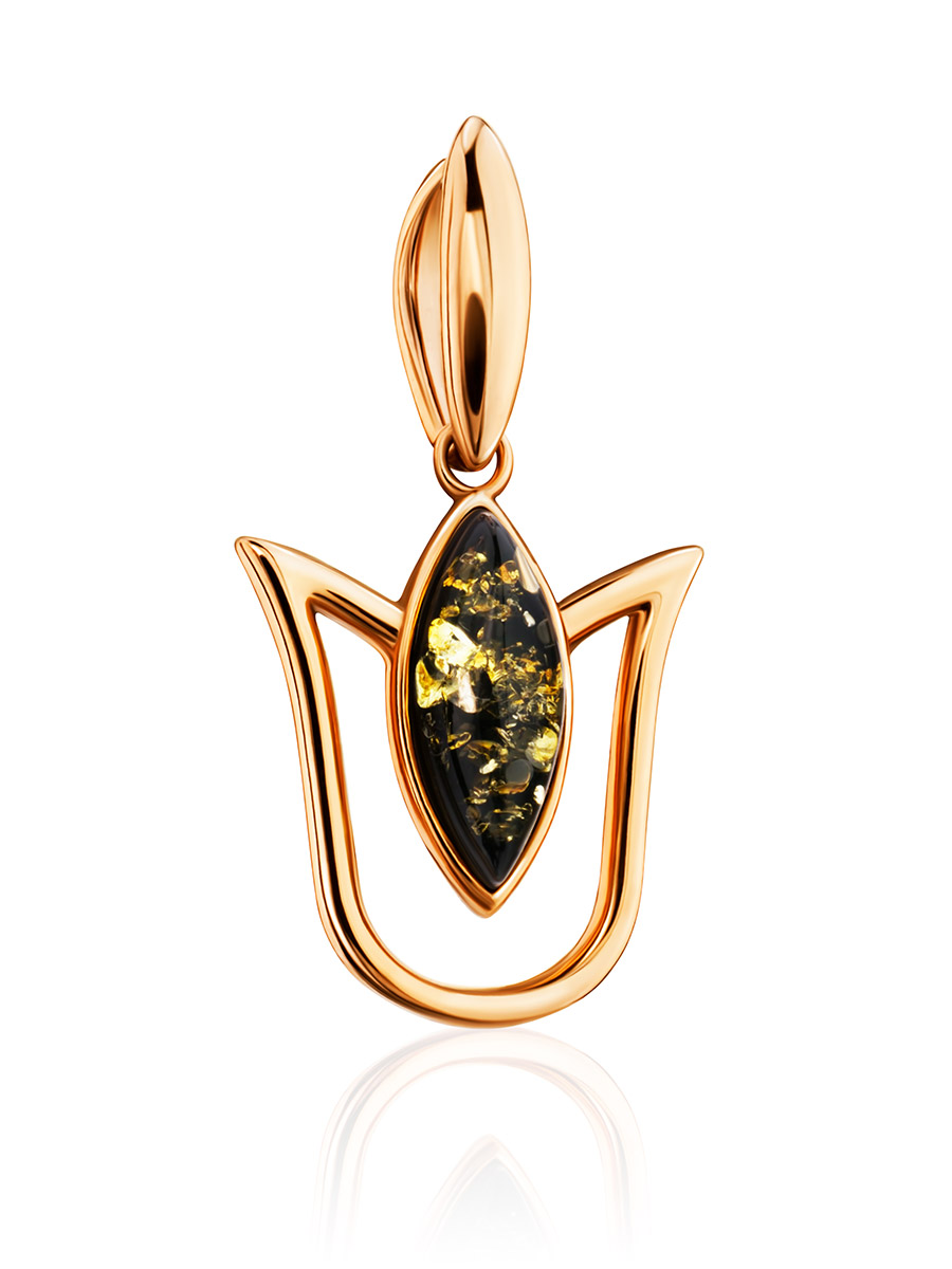 Нежный лёгкий кулон с зелёным янтарём «Тюльпан»