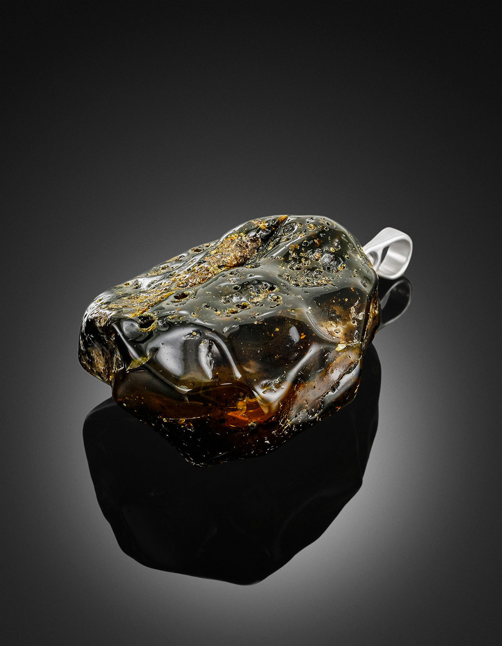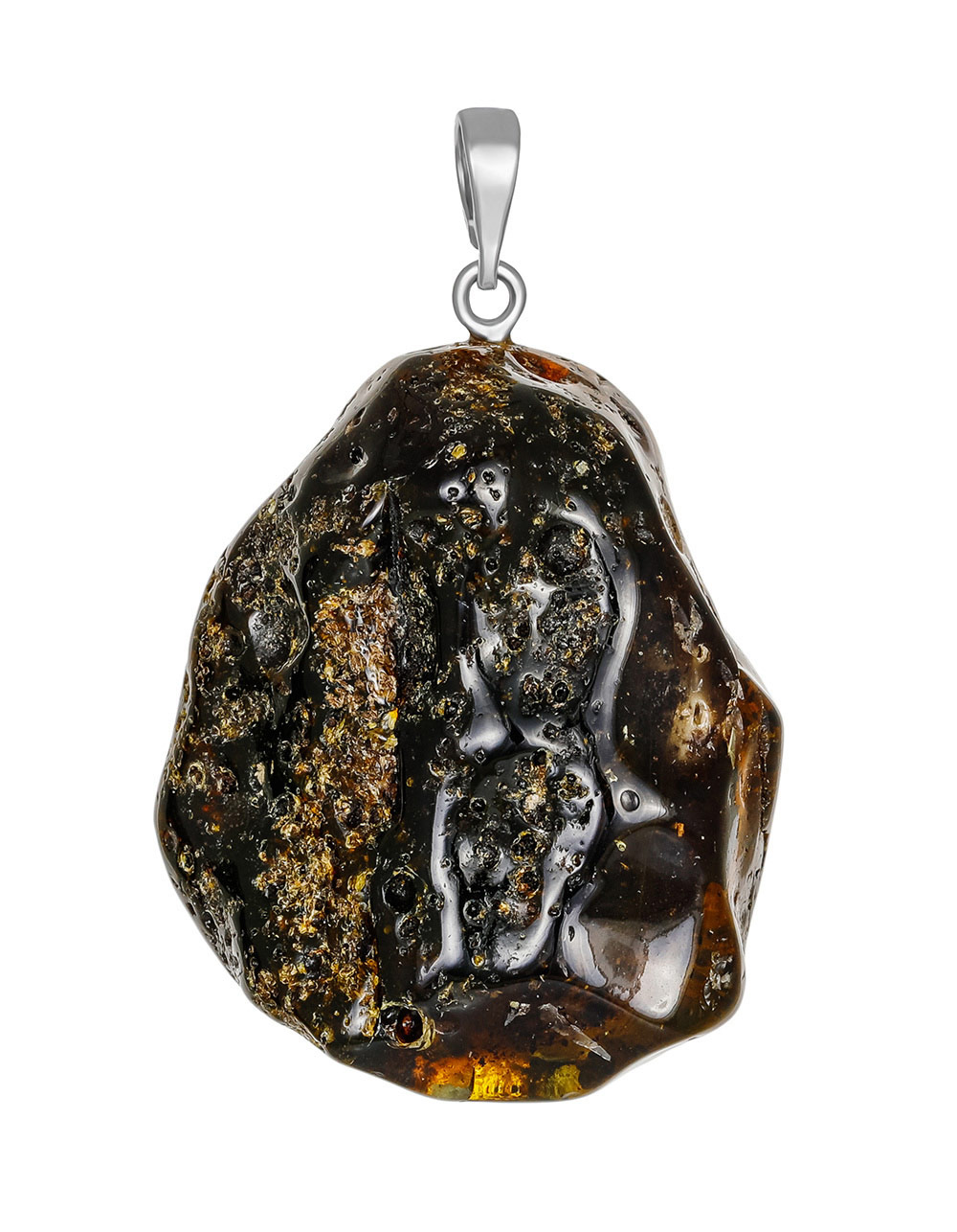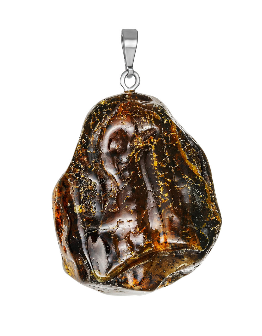 Объёмная подвеска из текстурного тёмного янтаря