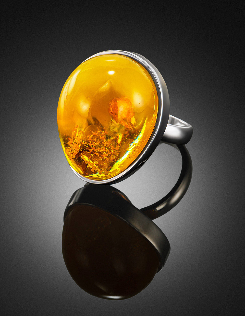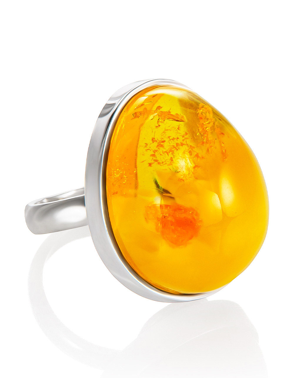 Объёмное кольцо «Глянец» со вставкой из цельного медового янтаря