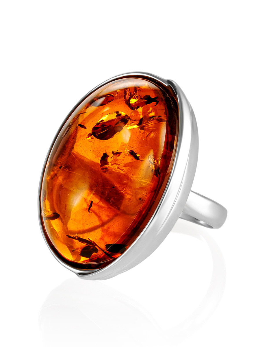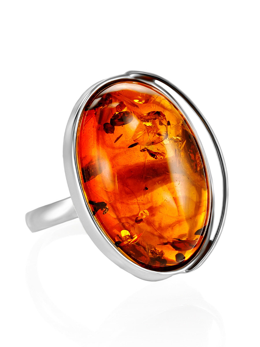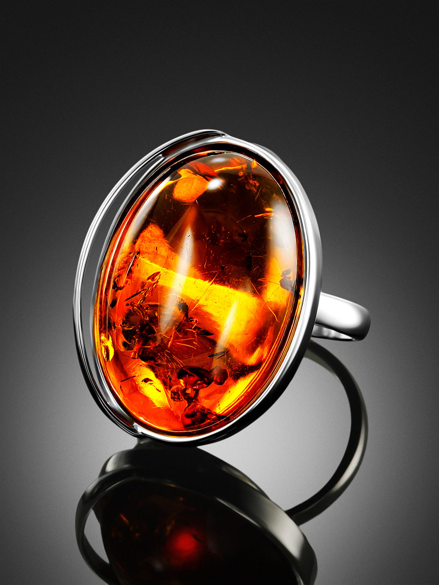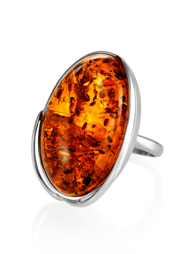Объёмное кольцо с натуральным балтийским янтарём «Лагуна»