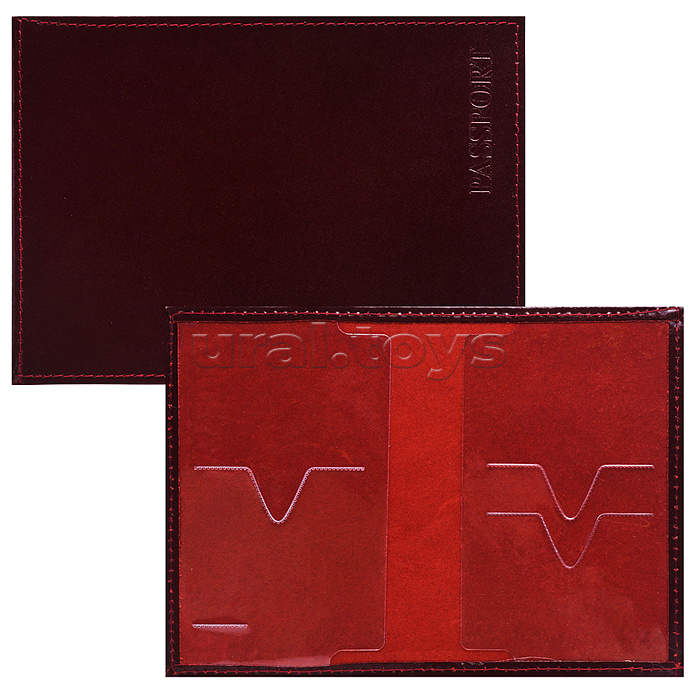 Обложка для паспорта "Attomex" 97x140 мм натуральная кожа шик гладкая, с конгревным тиснением PASSPORT, прозрачные ПВХ клапаны с 3-мя отделами для карт, бордовая