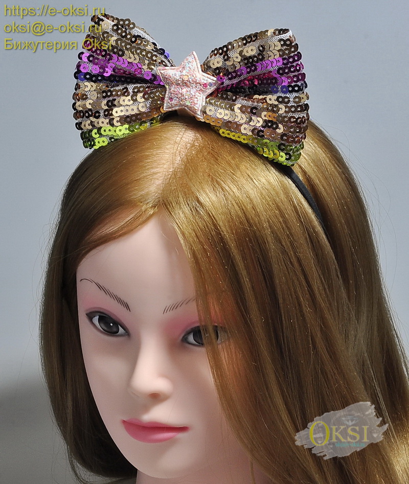 Стильный ободок с эффектным бантом украшен пайетками с двух сторон (спереди и сзади). Этот яркий аксессуар создаст праздничную атмосферу на любой вечеринке или празднике. Подойдёт как взрослым. так и детям, не жмет и давит голову, не мешает вести активный образ жизни. Цена за 1 шт. Размер банта 13 см х 8 см.