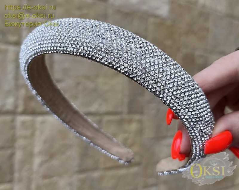 Роскошный, эффектный, широкий и объемный ободок украшен сверкающими кристаллаит по всей длине ободка. Объёмный, крупный, но очень лёгкий. Удобный и комфортный, не жмёт и не сдавливает голову. Данный ободок не просто очень эффектный аксессуар, который удерживает прическу в нужном положении, но и завершающий штрих в создании стильного и восхитительного образа.