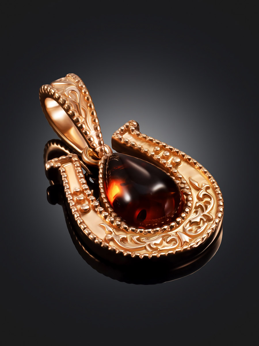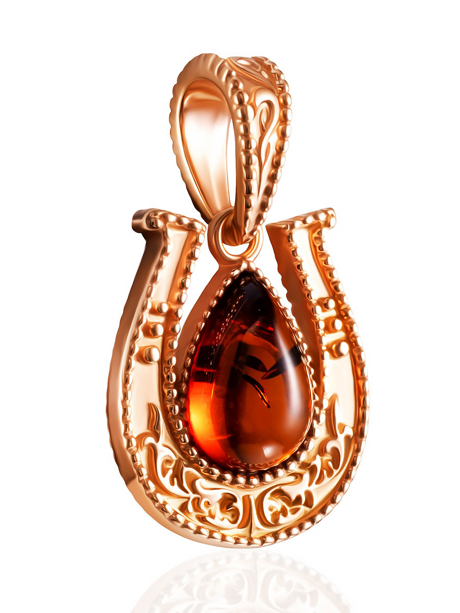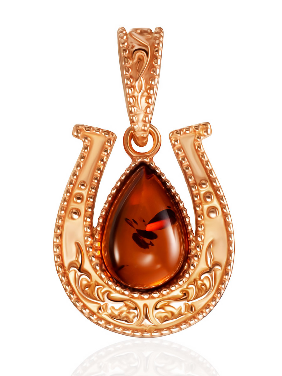 Очаровательная подвеска-подкова с натуральным балтийским янтарём