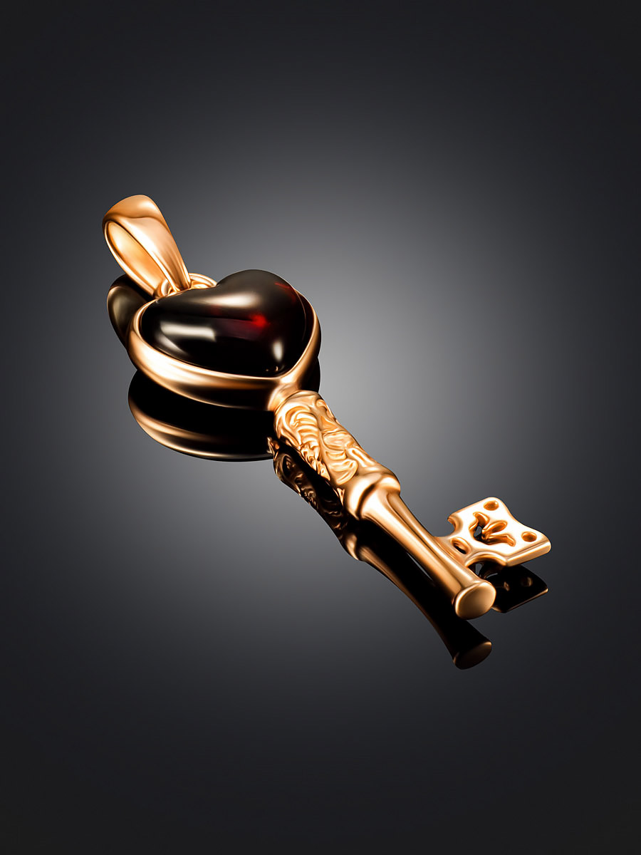Очаровательная подвеска с натуральным янтарём «Ключик от сердца»