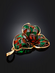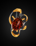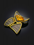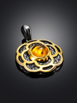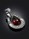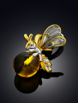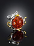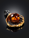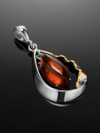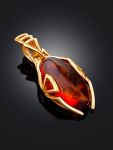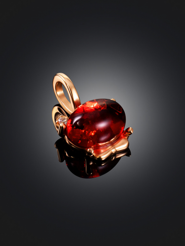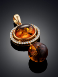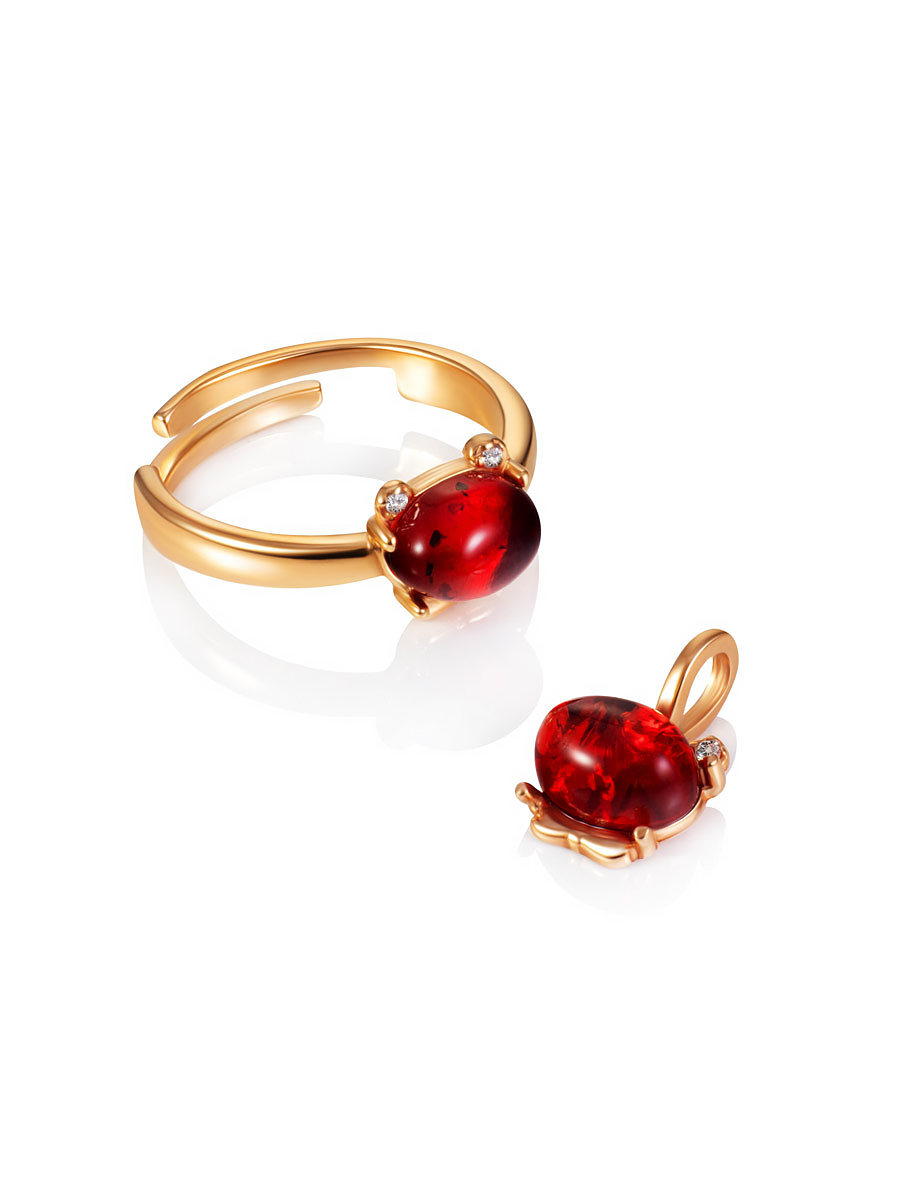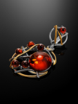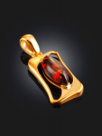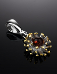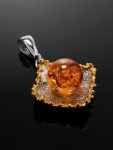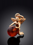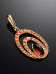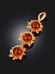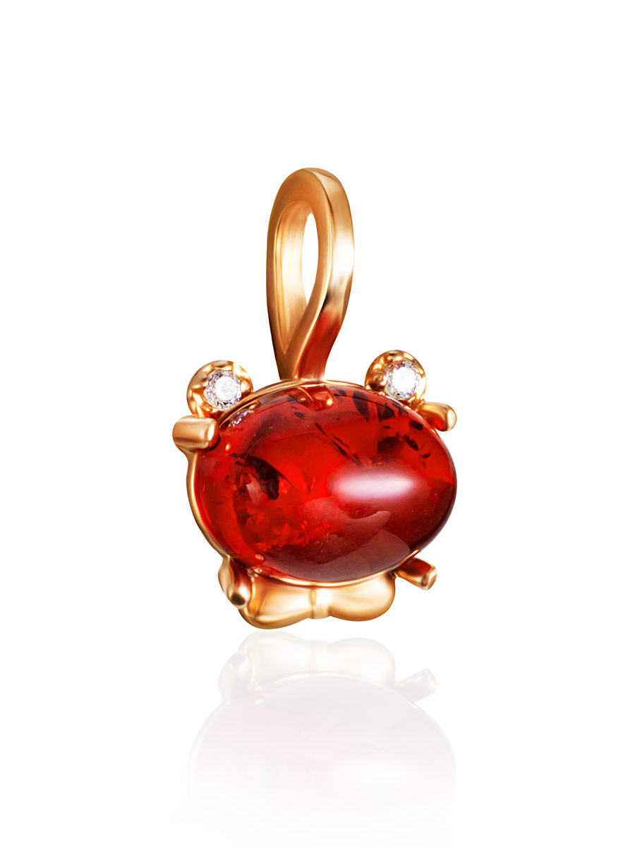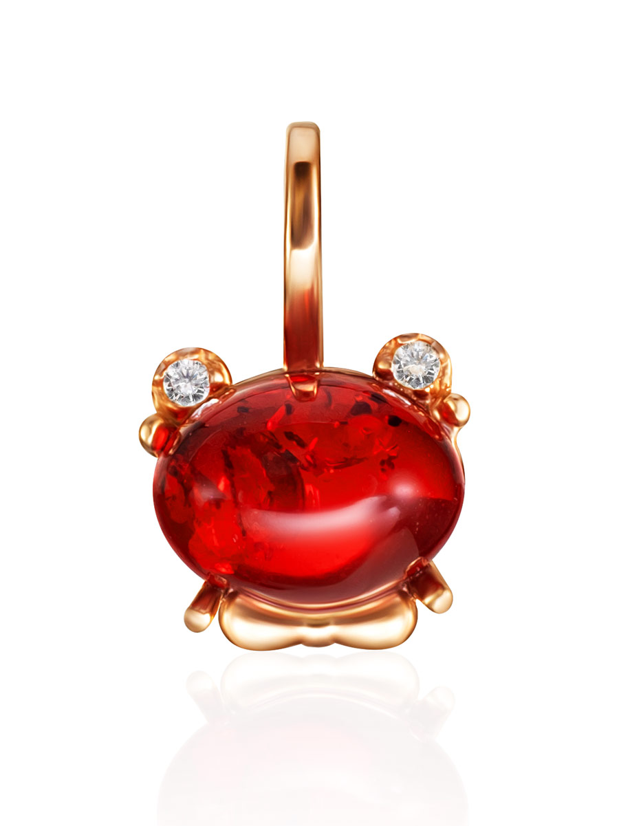 Очаровательная позолоченная подвеска «Медвежонок» с красным янтарём и фианитами