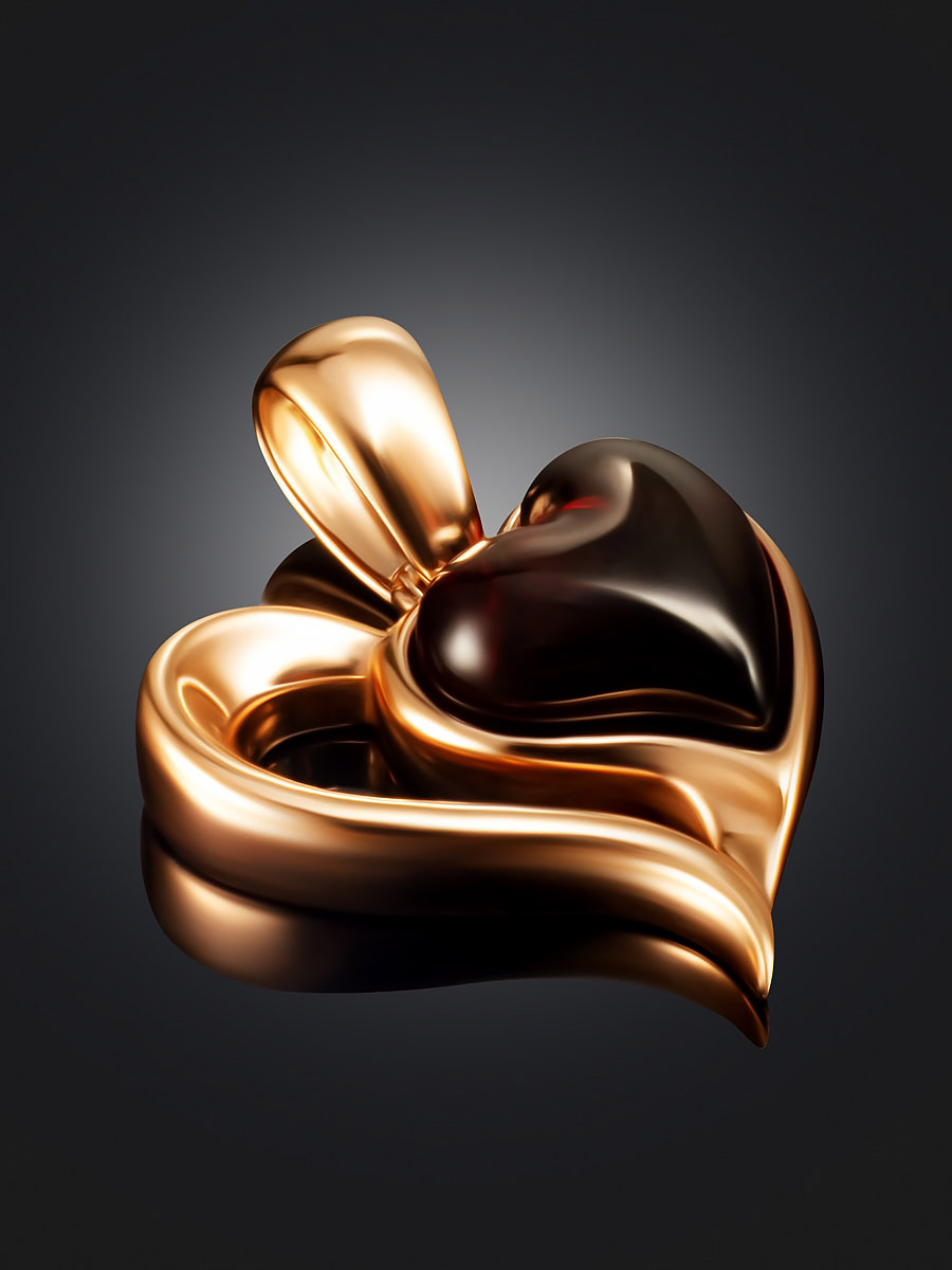 Очаровательная позолоченная подвеска с вишнёвым янтарём «Купидон»