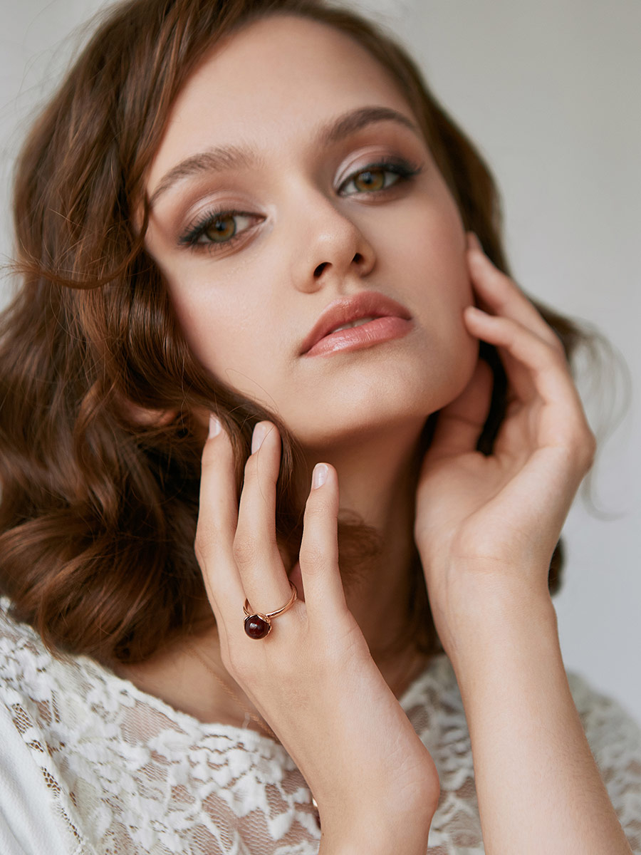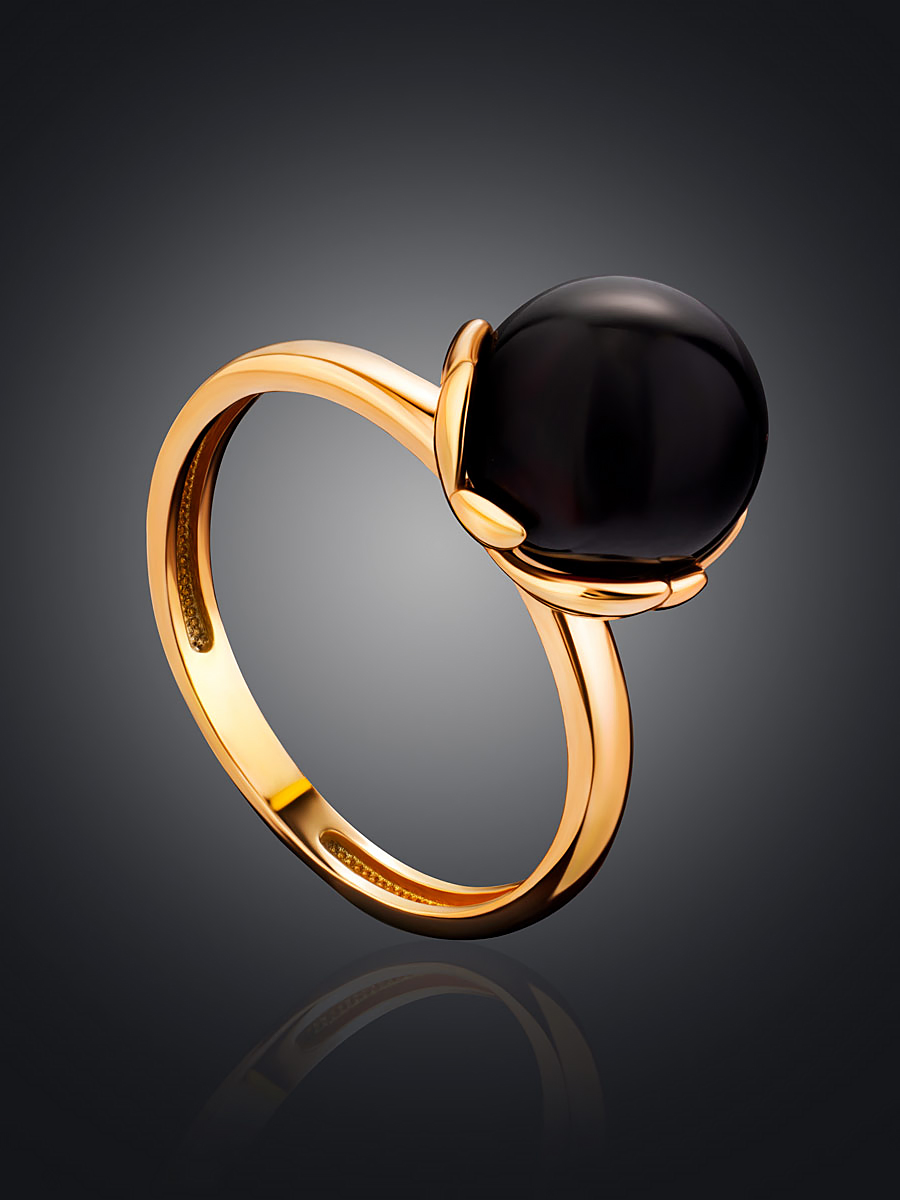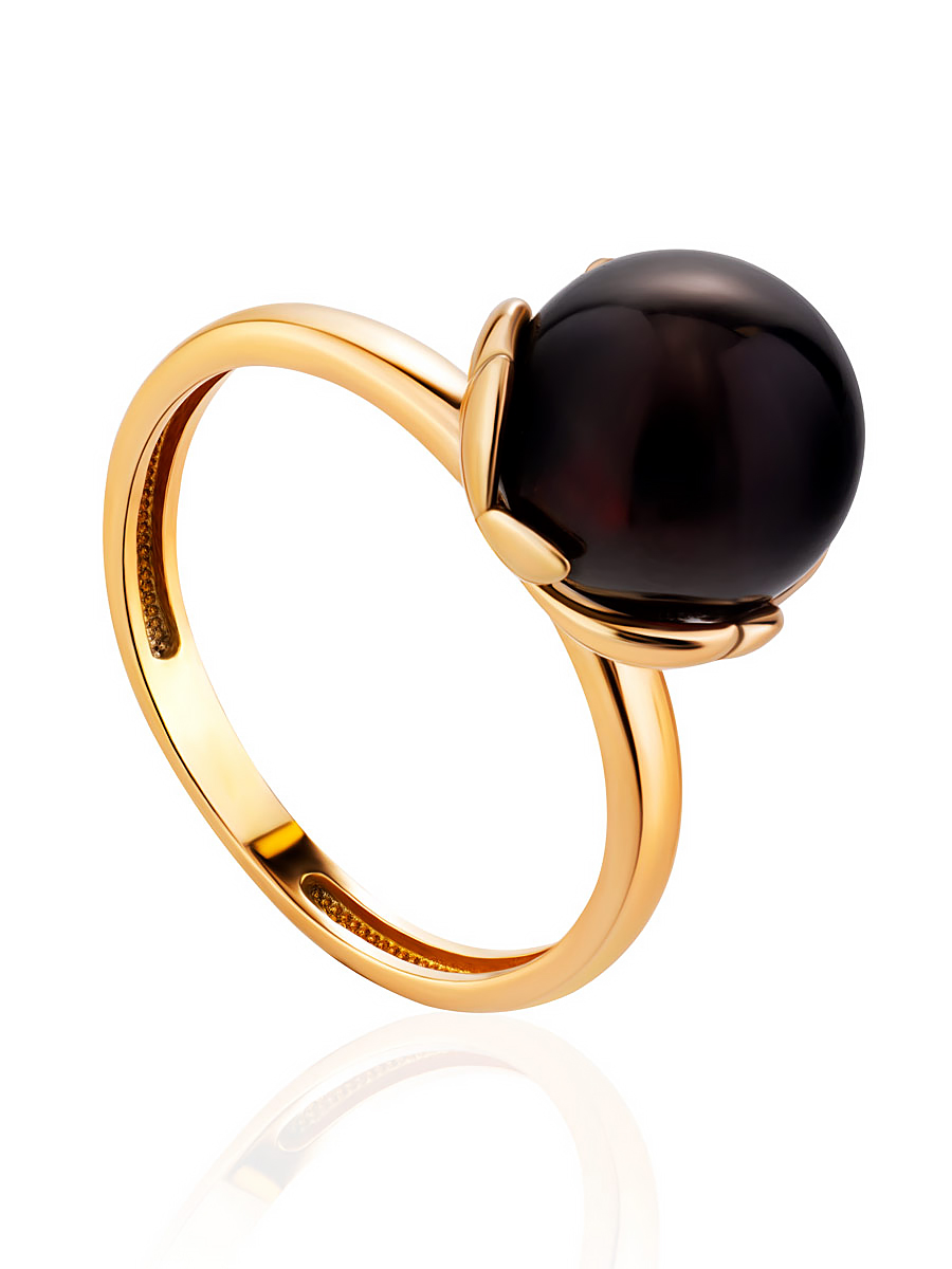 Очаровательное кольцо из янтаря вишнёвого цвета «Ника»