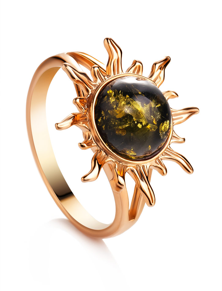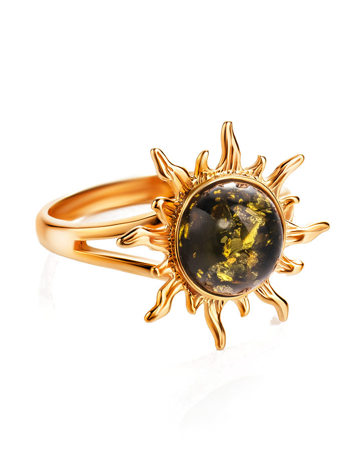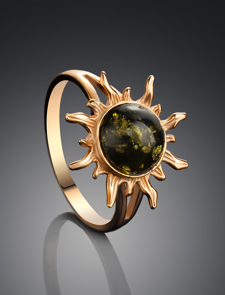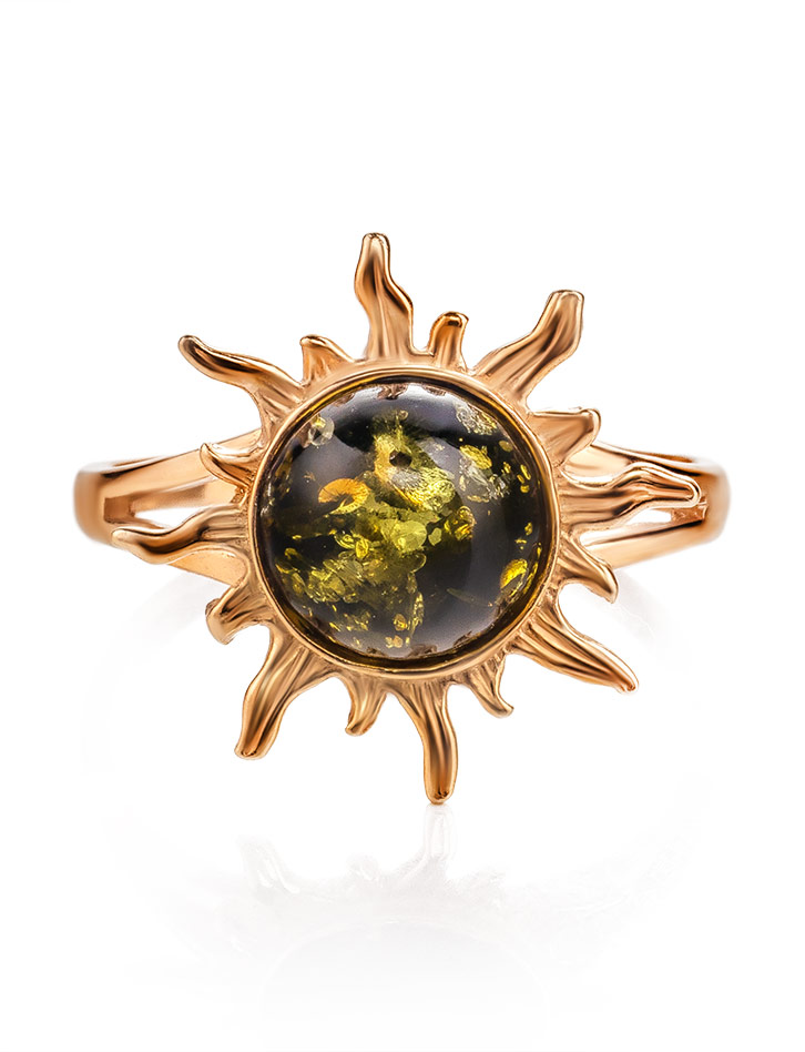 Очаровательное кольцо из янтаря зелёного цвета «Гелиос»