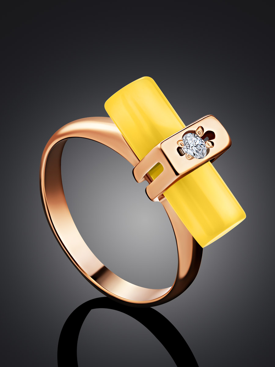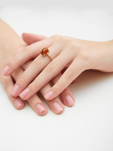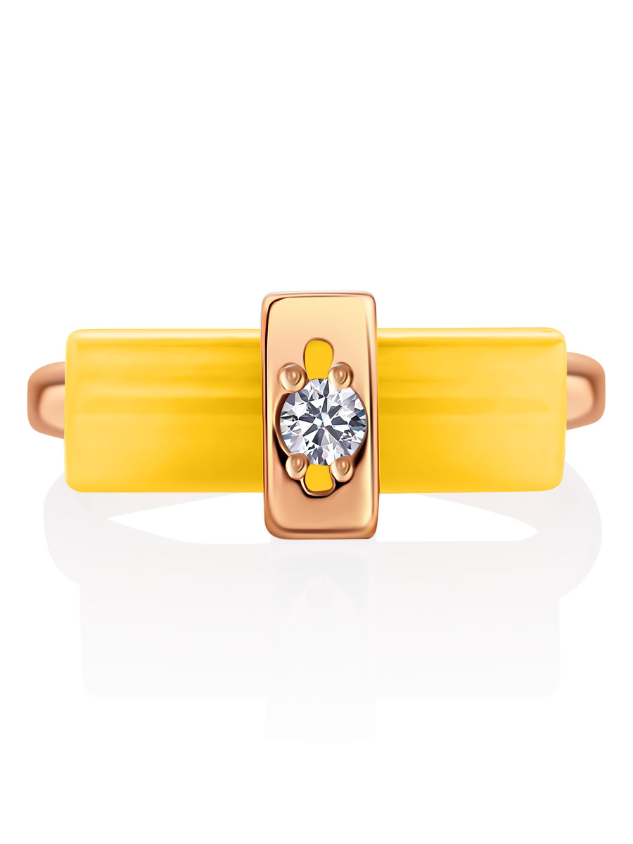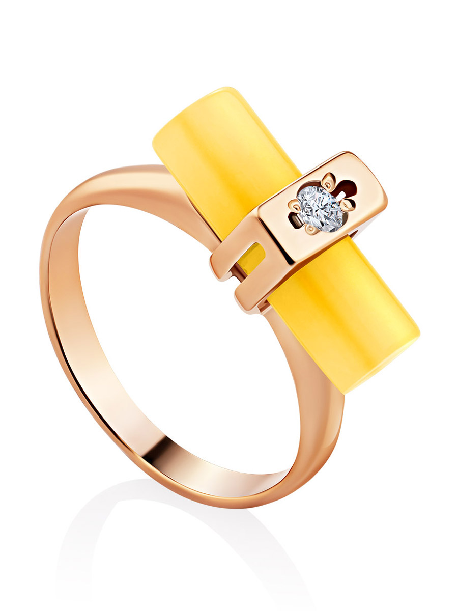 Очаровательное кольцо «Скандинавия» с медовым янтарём и фианитом