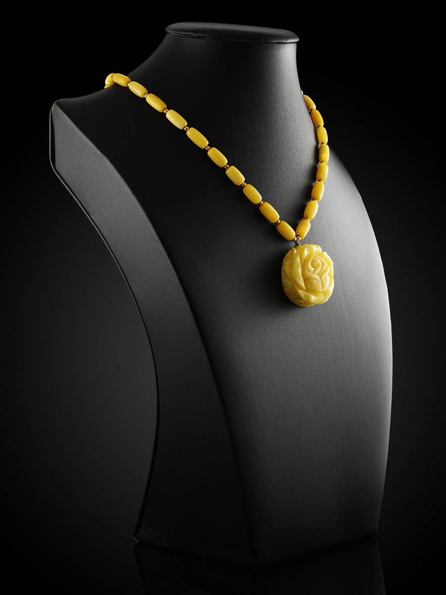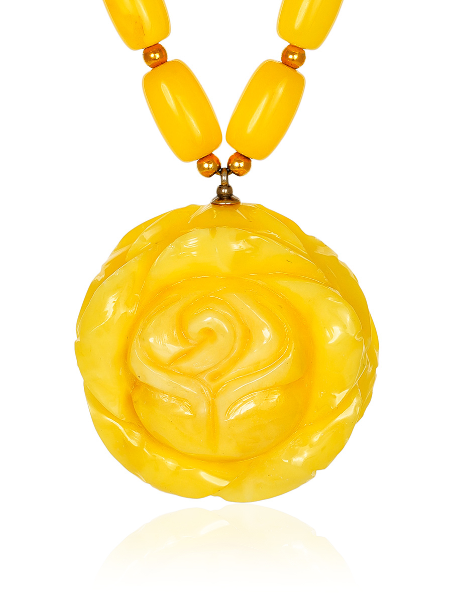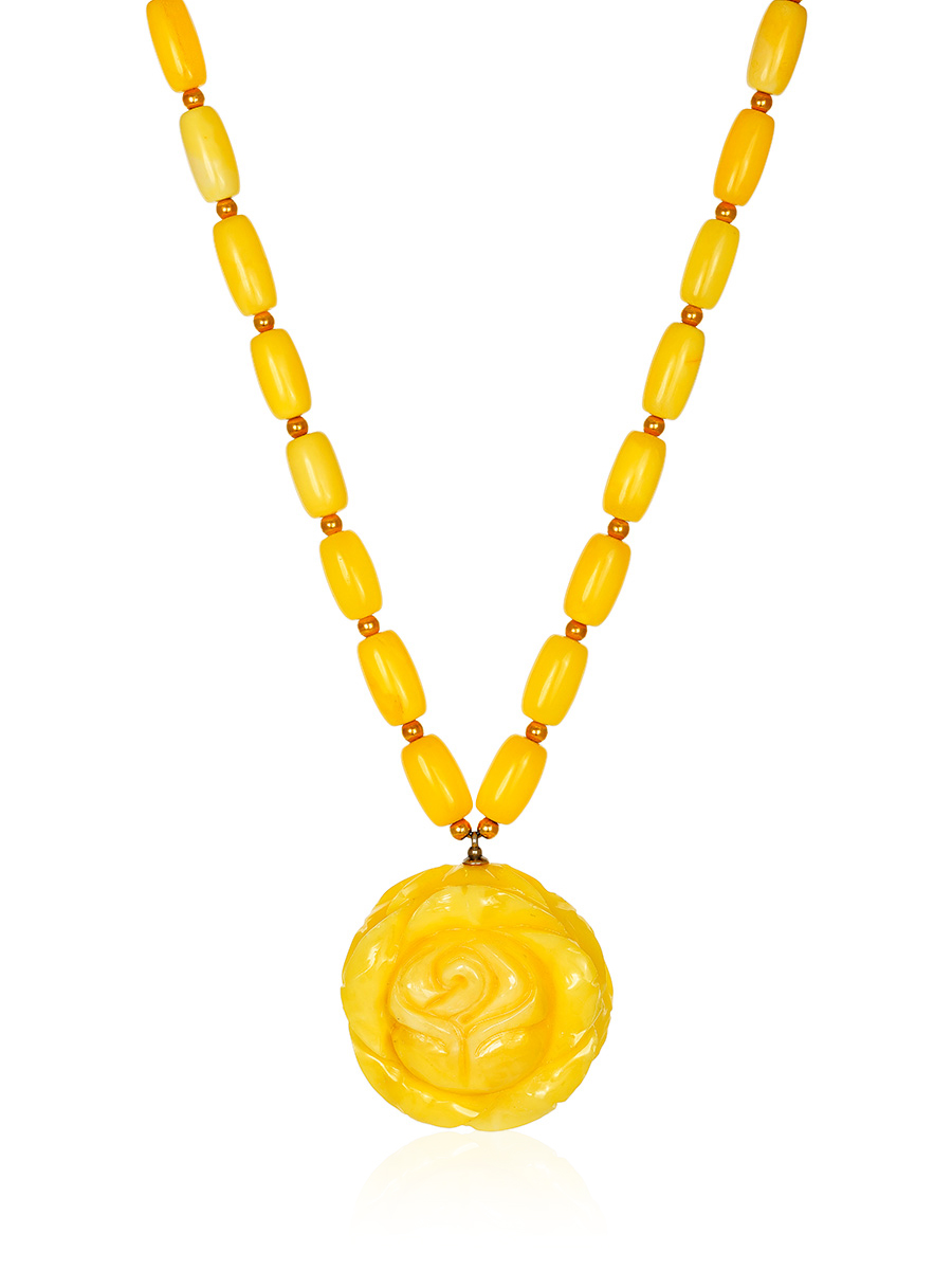 Очаровательное колье из натурального янтаря «Чайная роза»