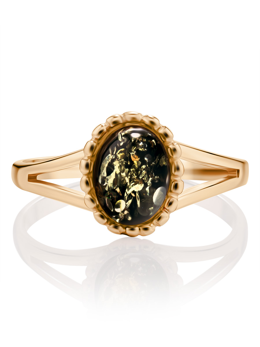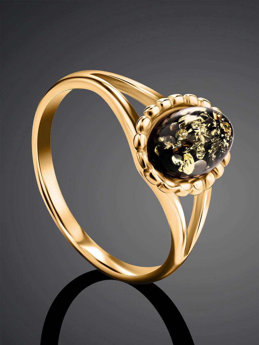 Очаровательное лёгкое кольцо из позолоченного серебра и зелёного янтаря «Флоренция»