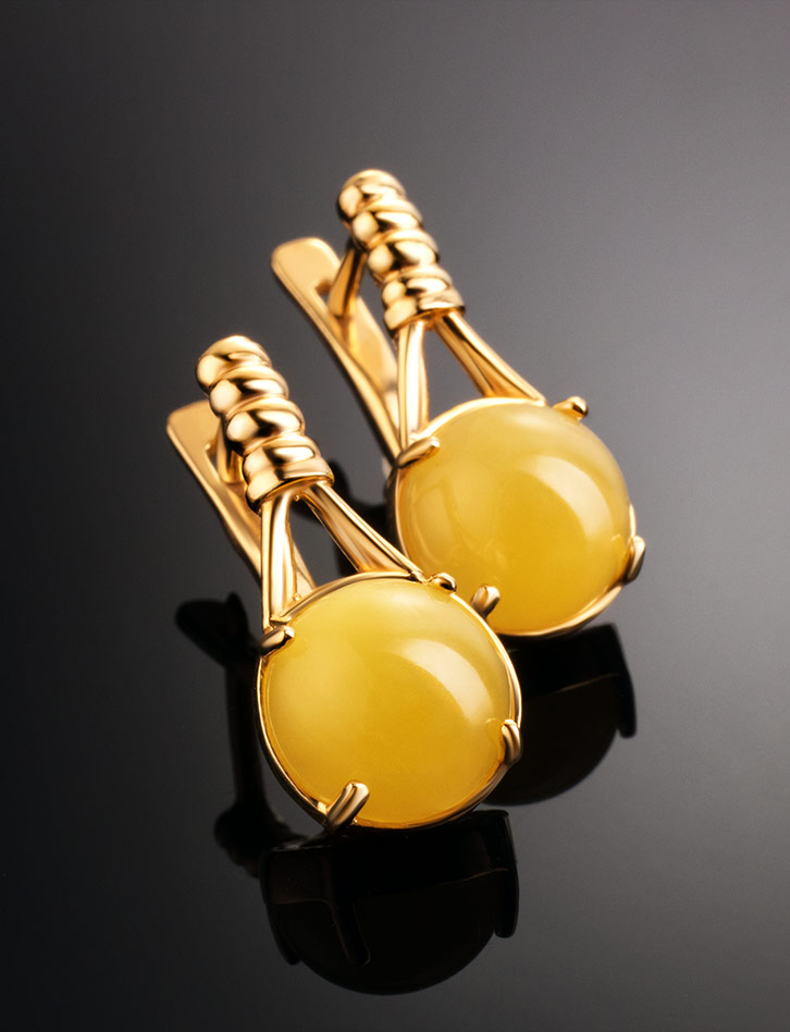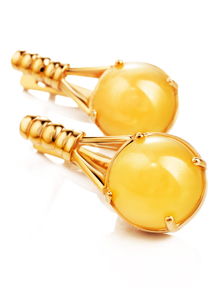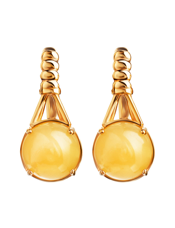 Очаровательные позолоченные серьги «Шанхай» с медовым янтарём