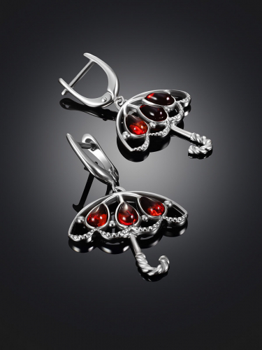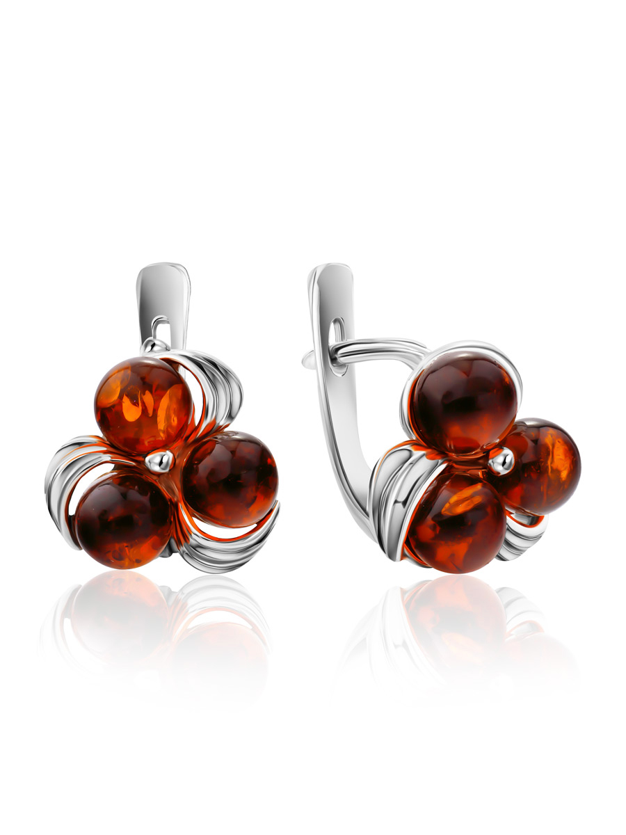 Очаровательные серьги «Брусничка» из натурального янтаря коньячного цвета