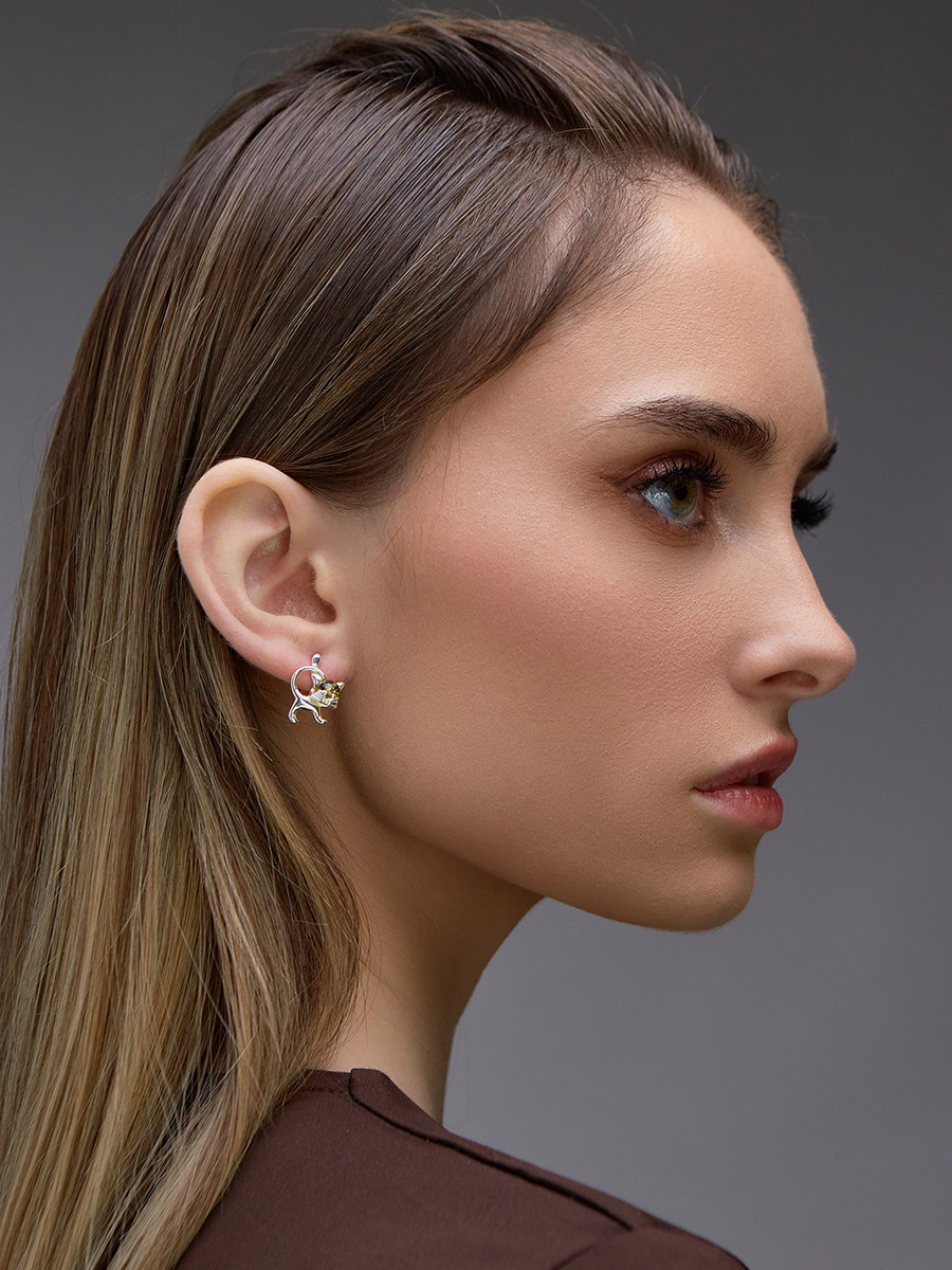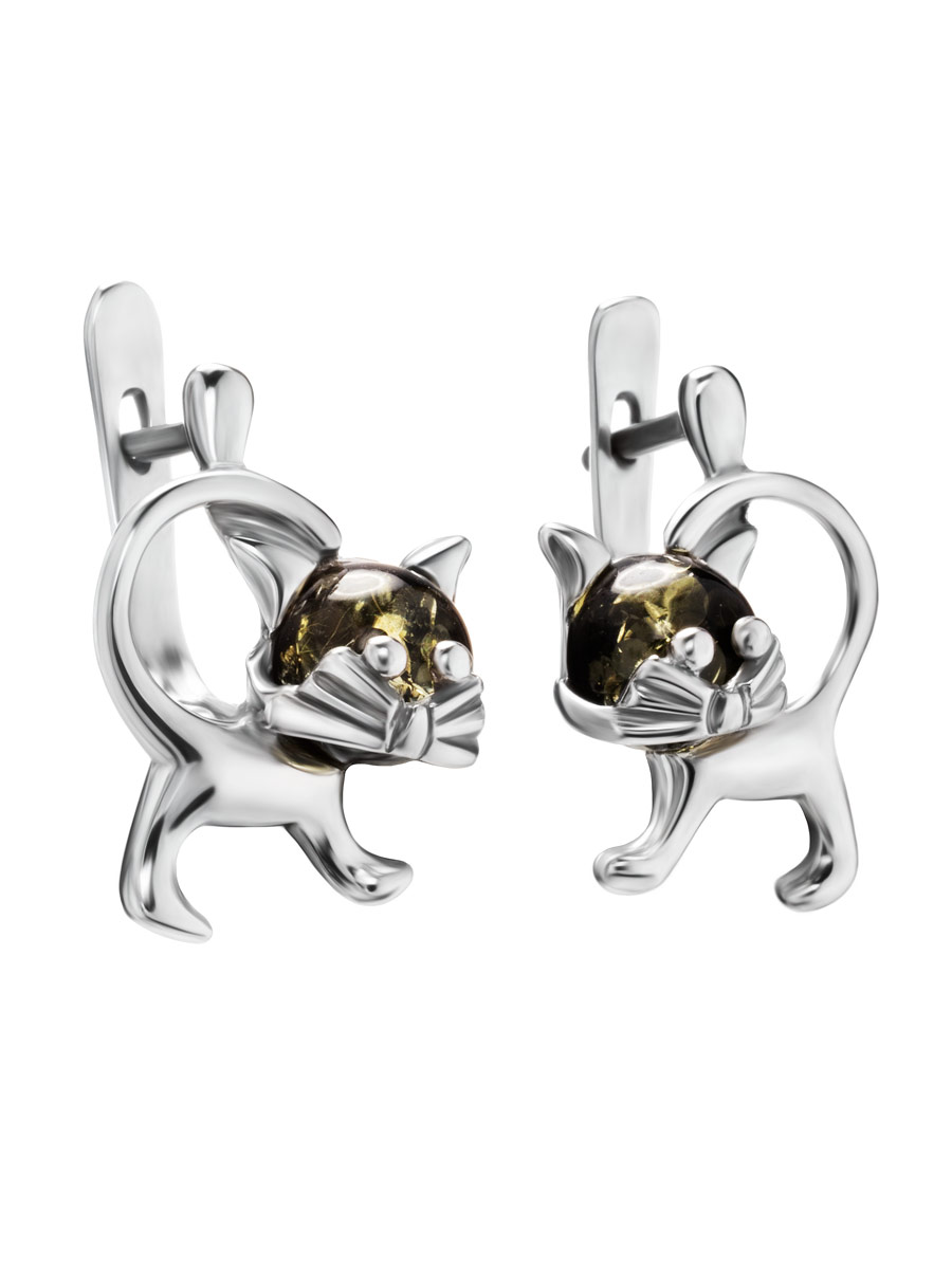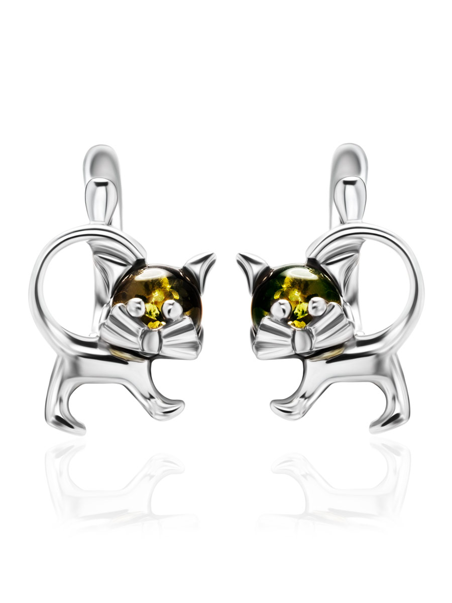 Очаровательные серьги из янтаря зелёного цвета «Чешир»