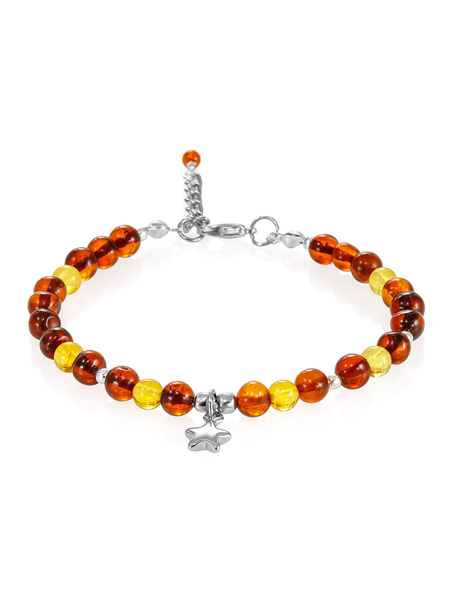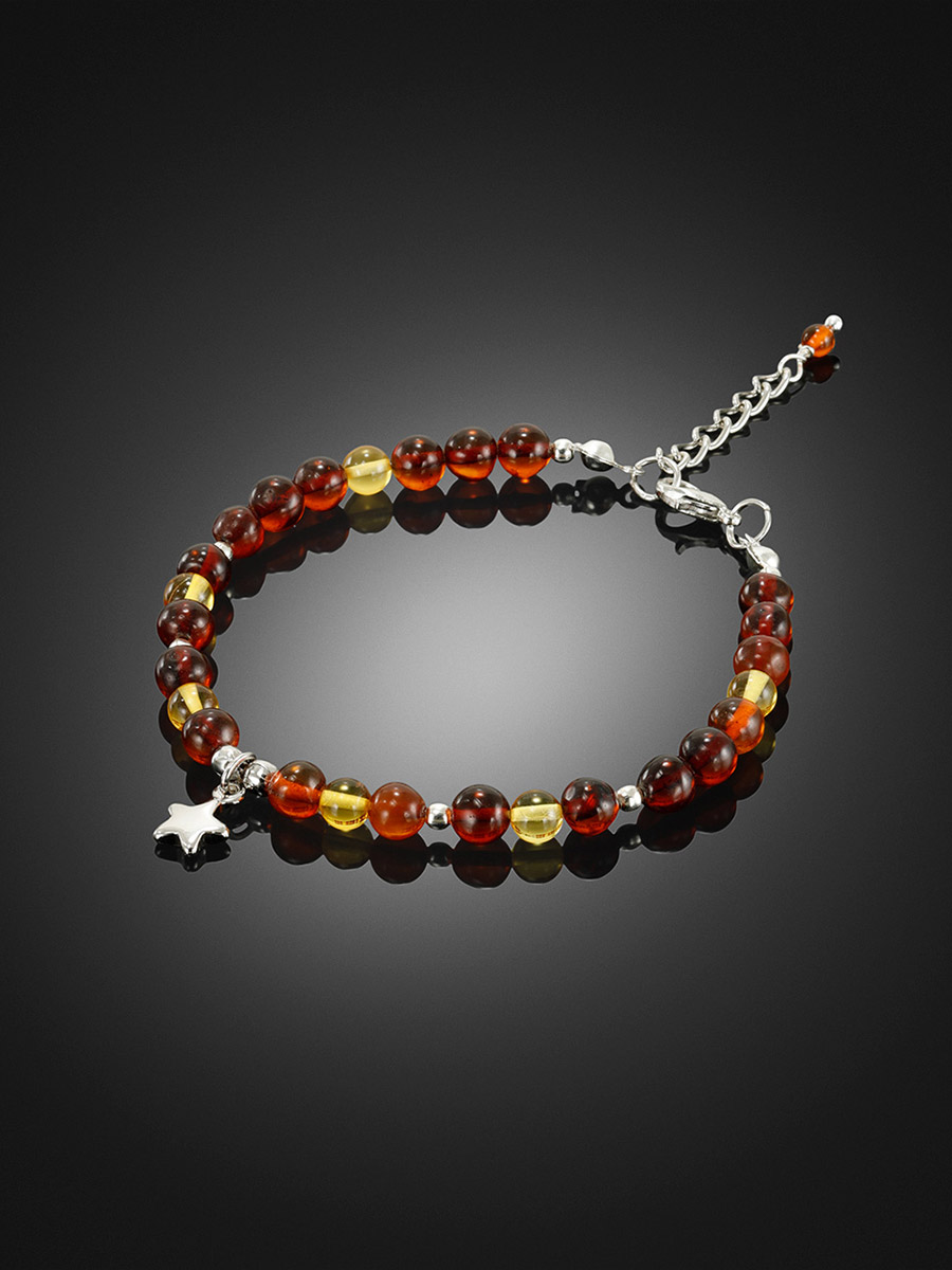Очаровательный браслет из натурального янтаря с подвеской-звёздочкой