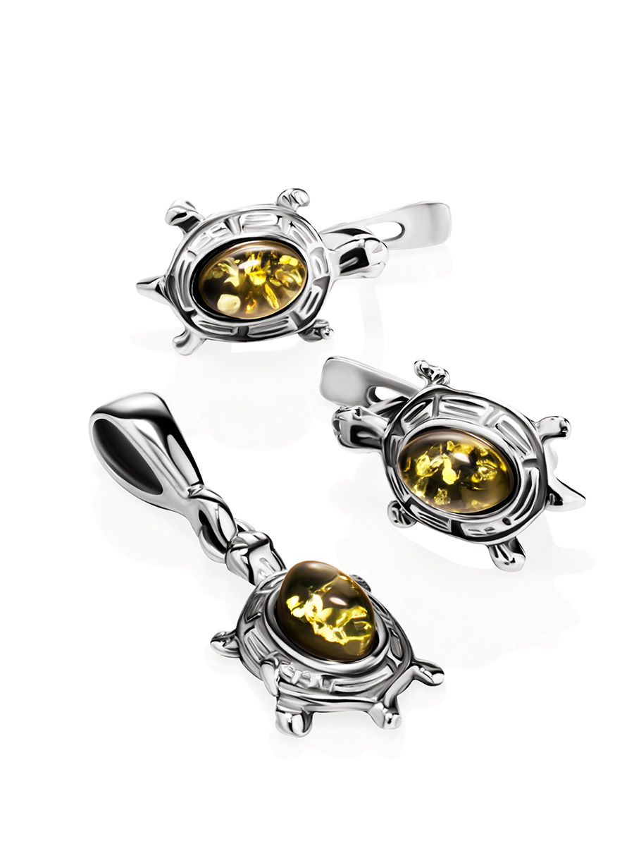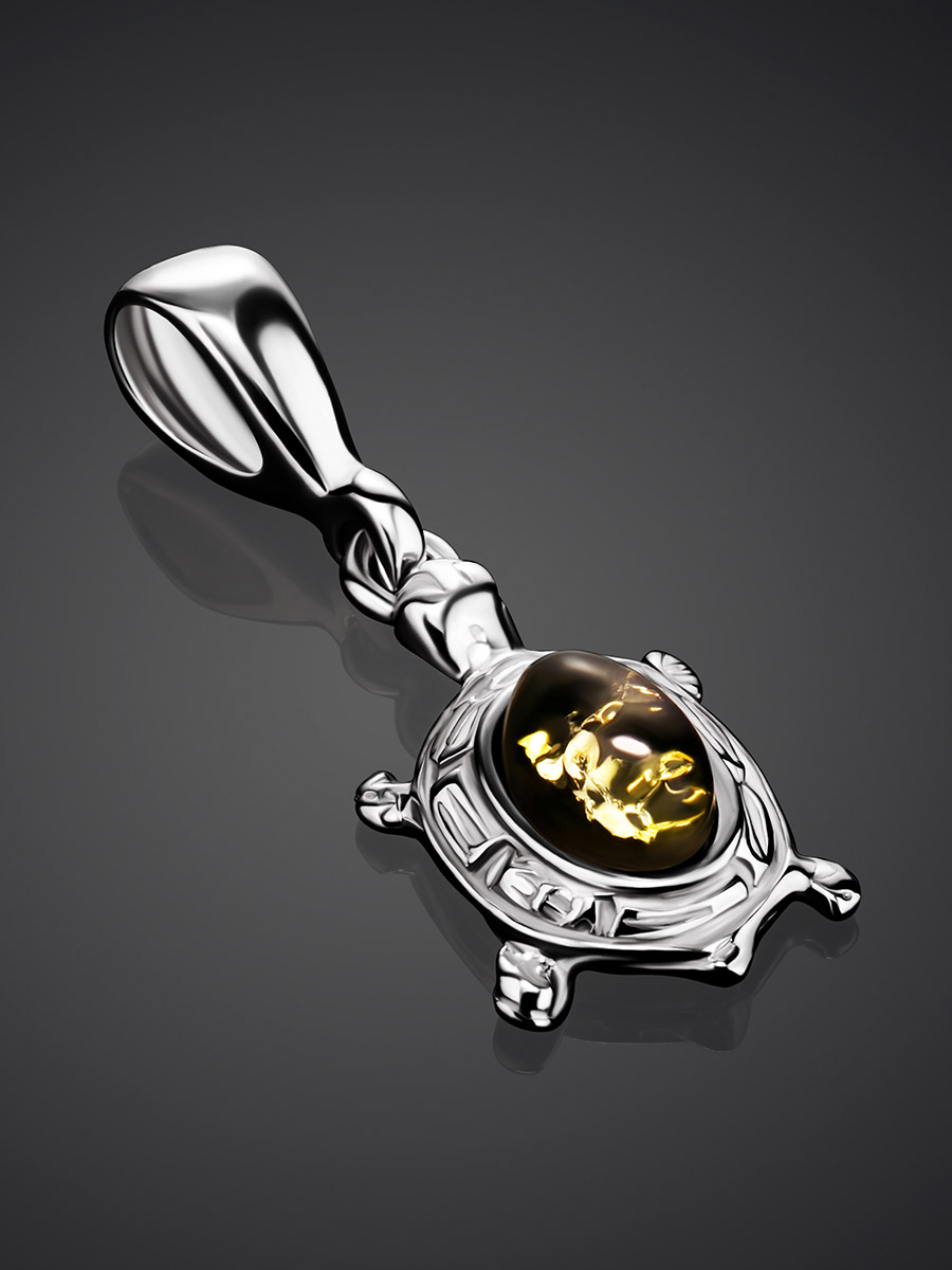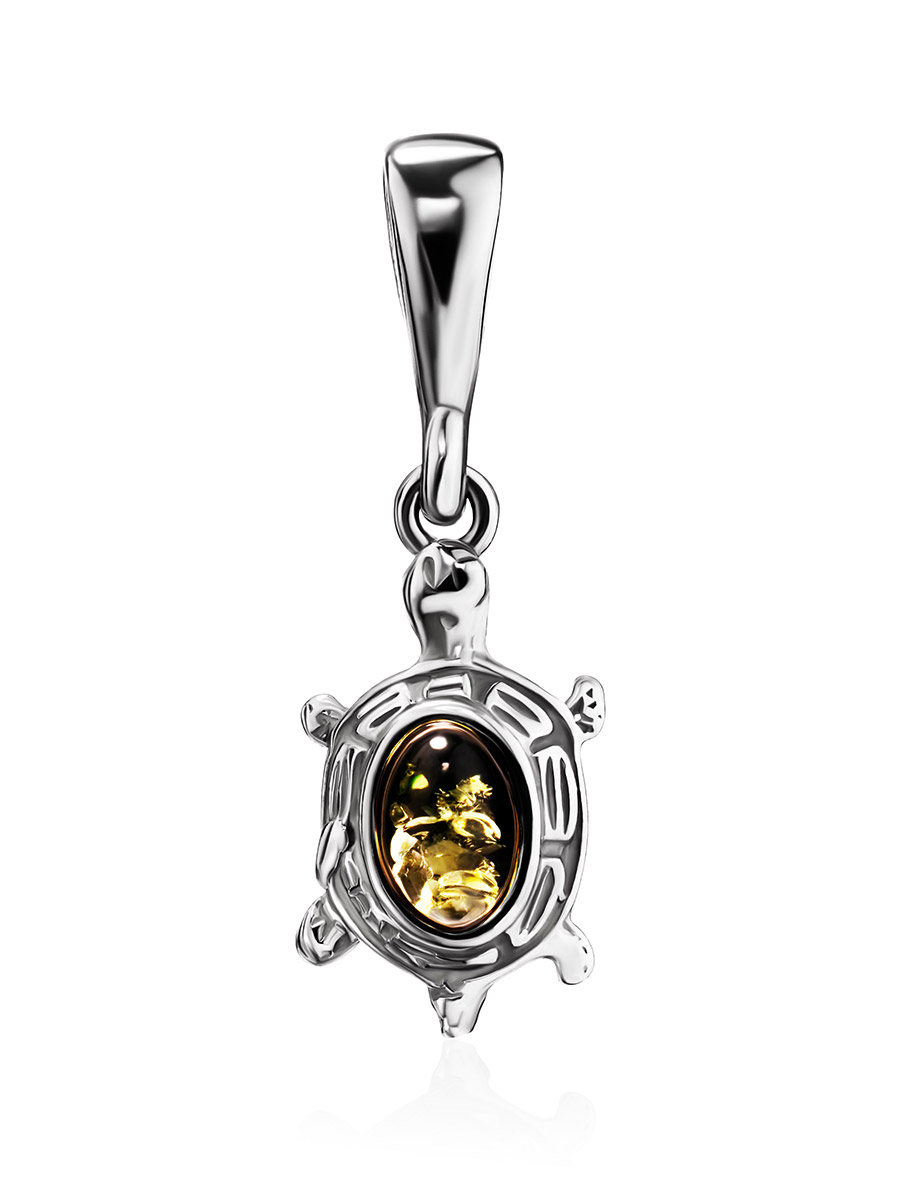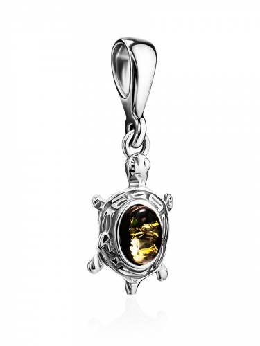 Очаровательный кулон с зелёным янтарём «Черепашка»