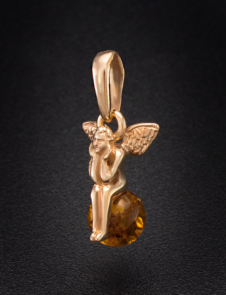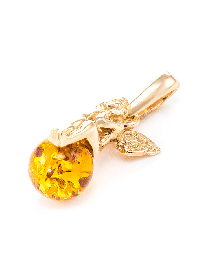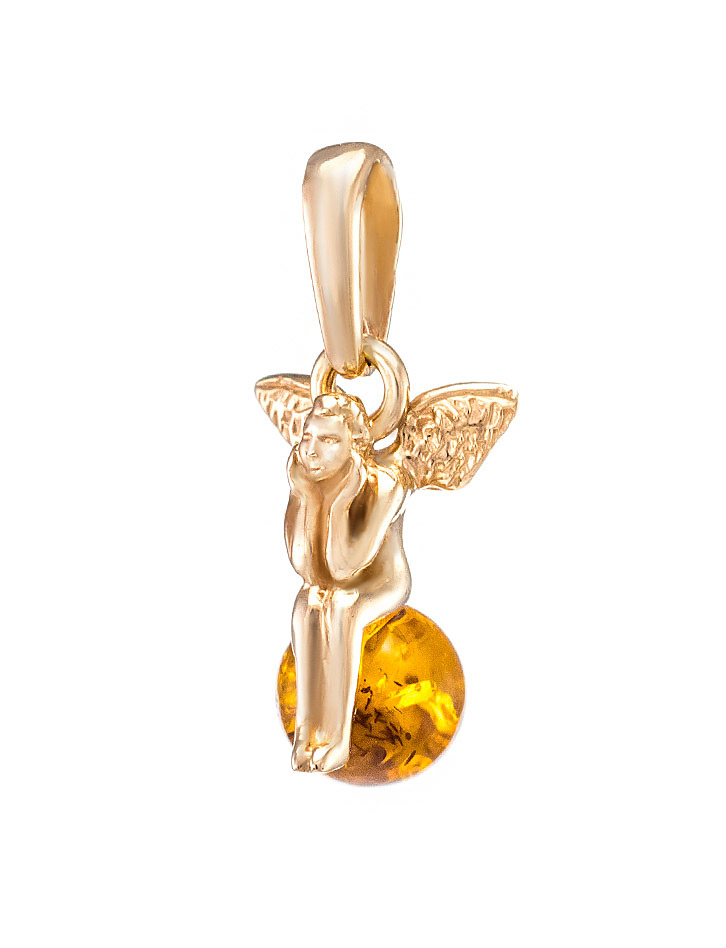 Очаровательный позолоченный кулон с натуральным коньячным янтарём «Ангелок»