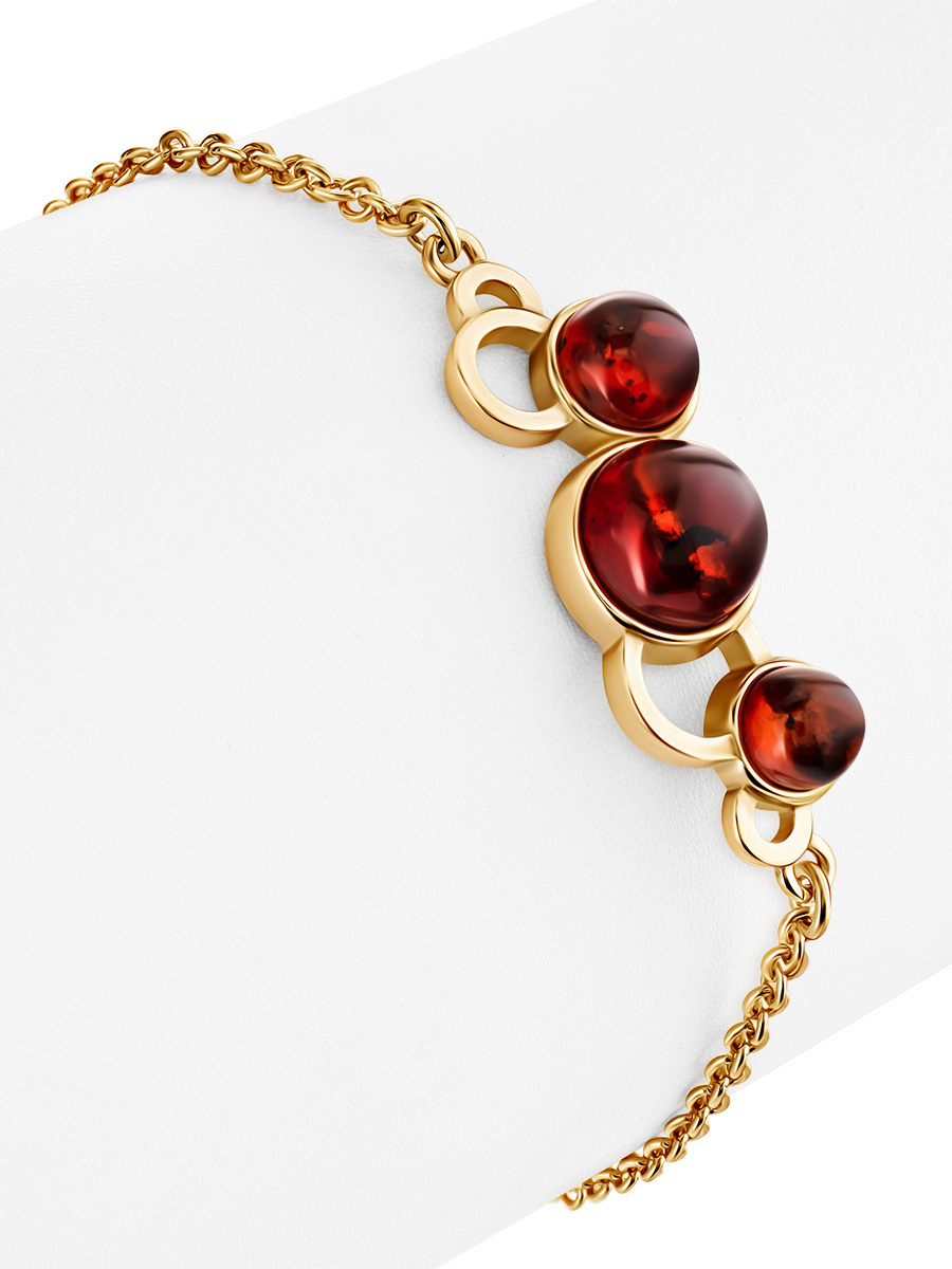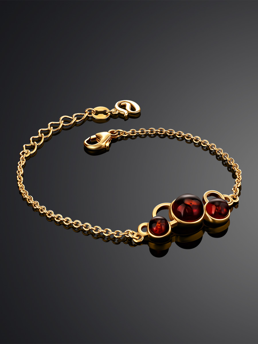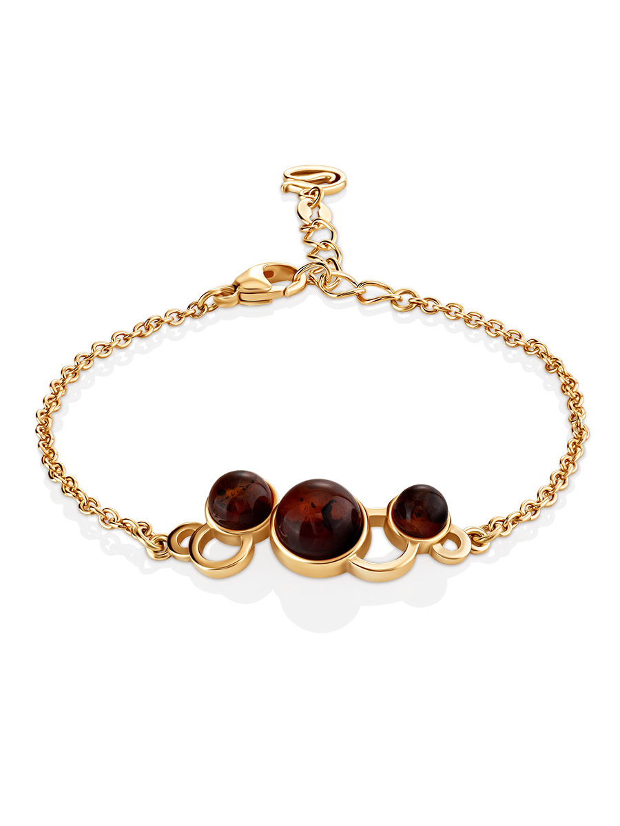 Очаровательный золоченный браслет с коньячным янтарём «Перфектум»