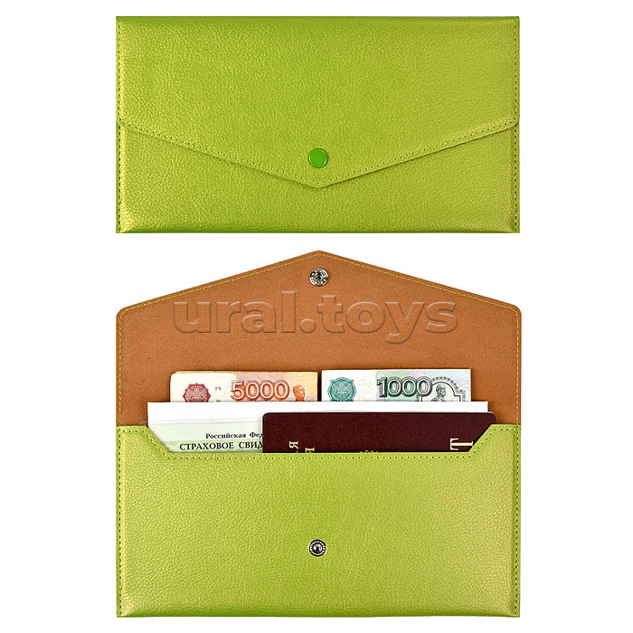 Органайзер-папка д/путешествий Наппа салатовый металлик (227х110 мм)