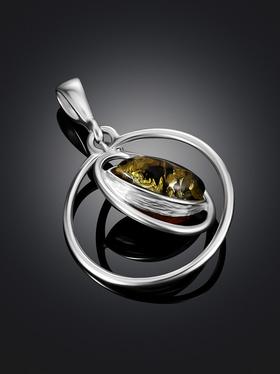 Оригинальная двухсторонняя подвеска «Рапсодия» с янтарём двух цветов