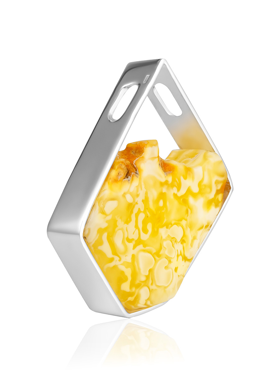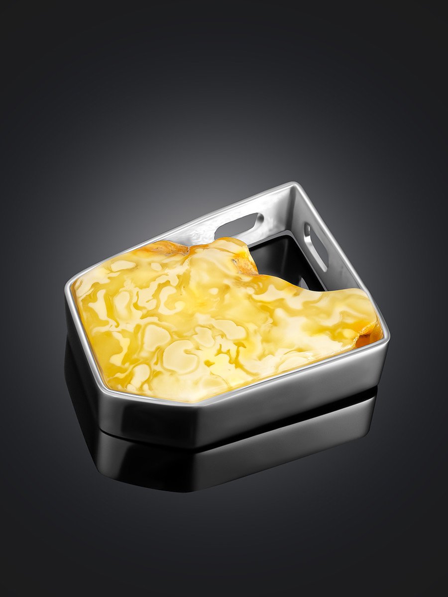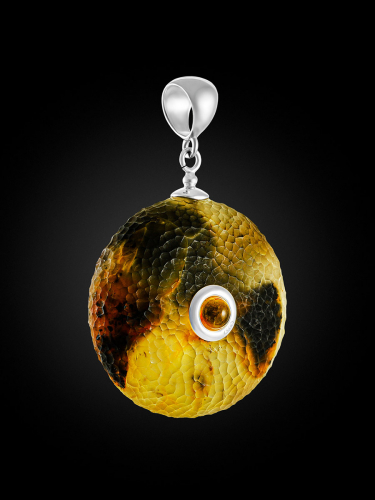 Оригинальная подвеска в футуристическом дизайне с натуральным пейзажным янтарём «Самум»