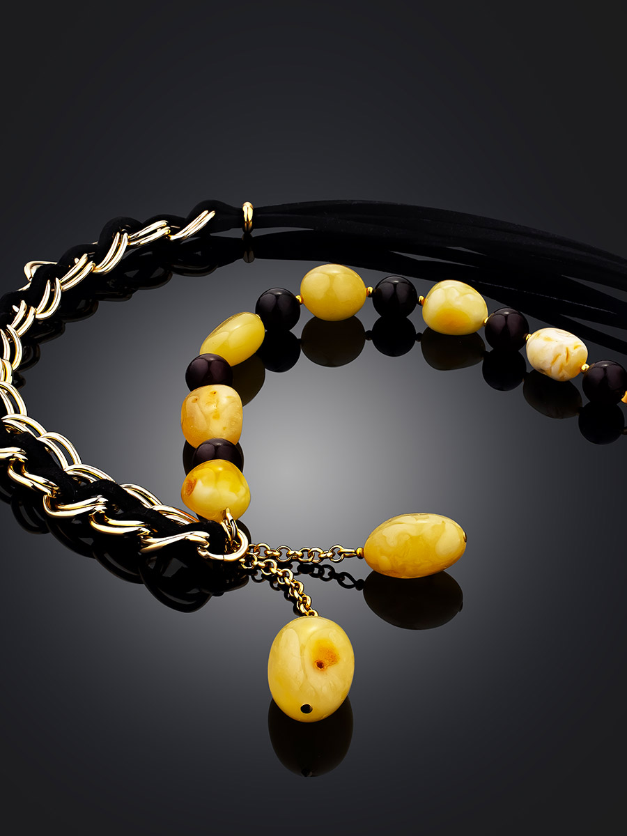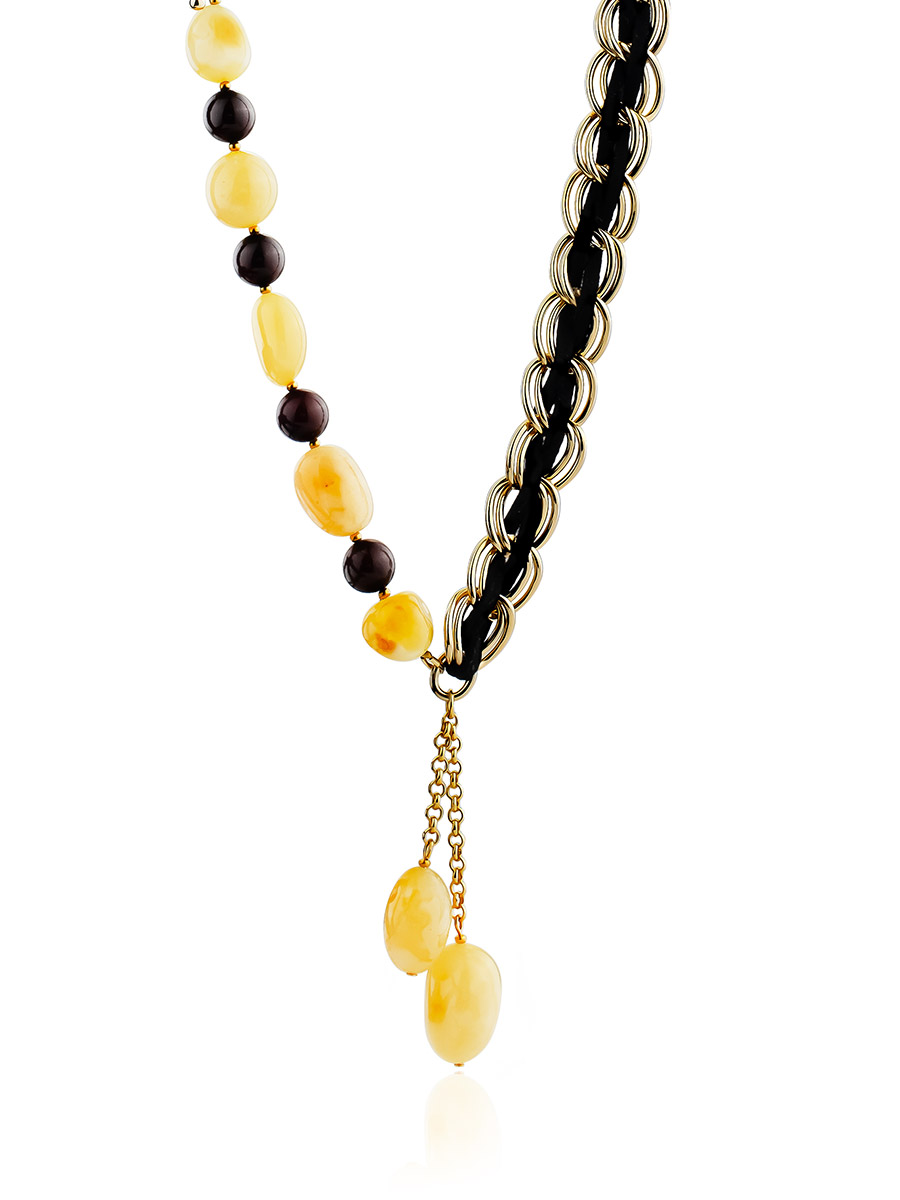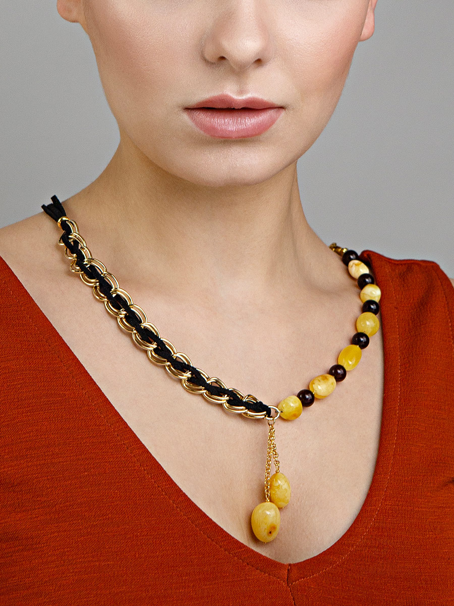 Оригинальное асимметричное колье с натуральным янтарём