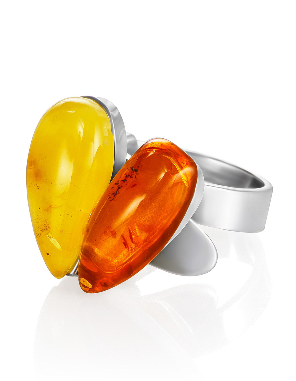 Оригинальное кольцо Bella Terra с натуральным янтарём