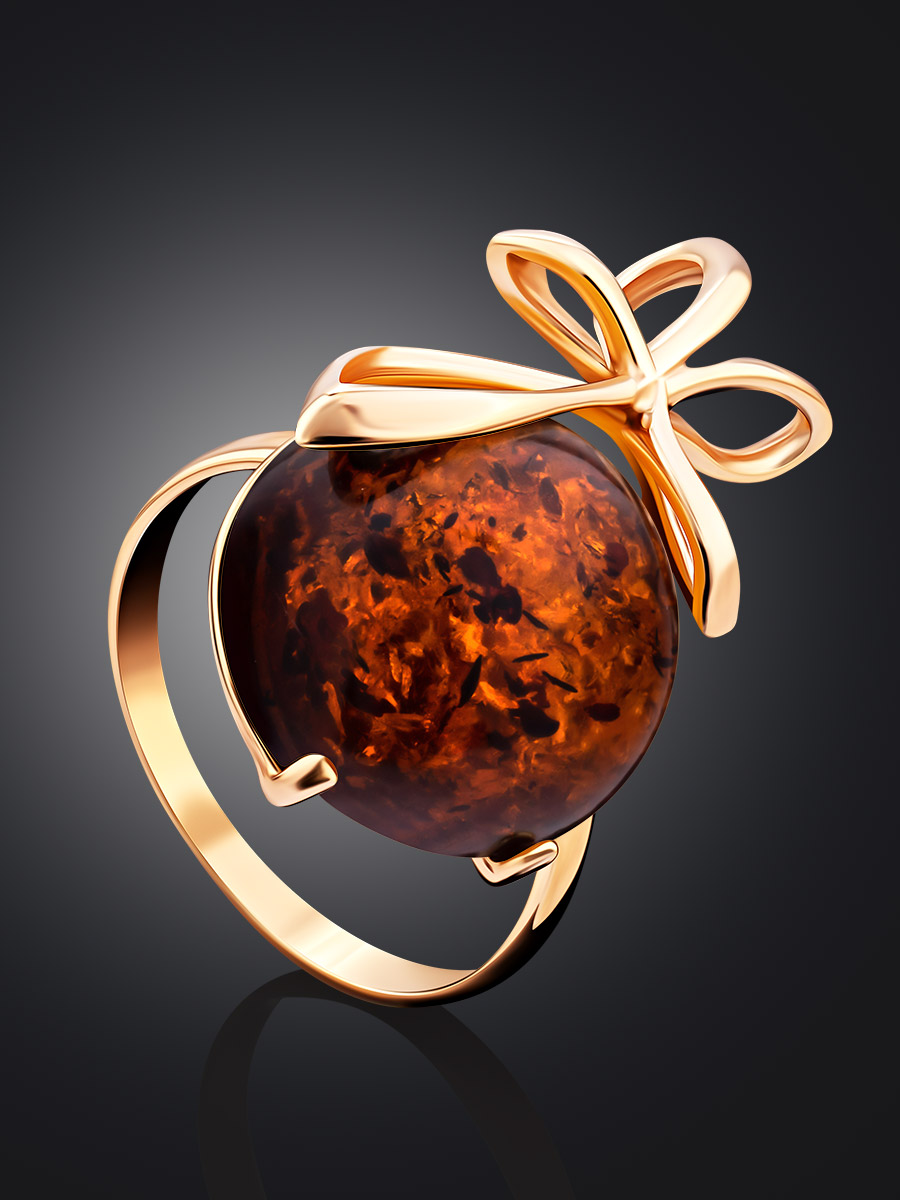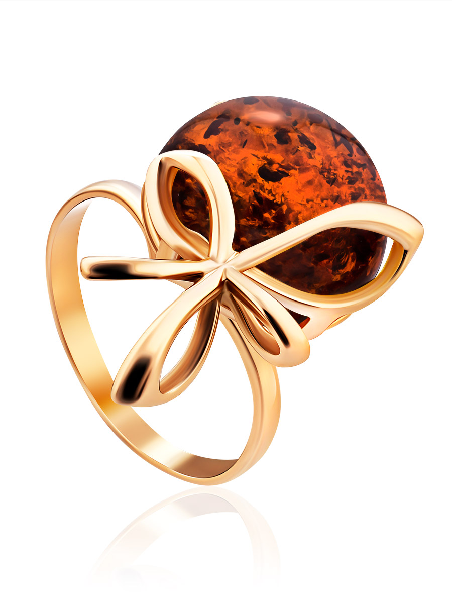 Оригинальное кольцо «Черри» с натуральным коньячным янтарём