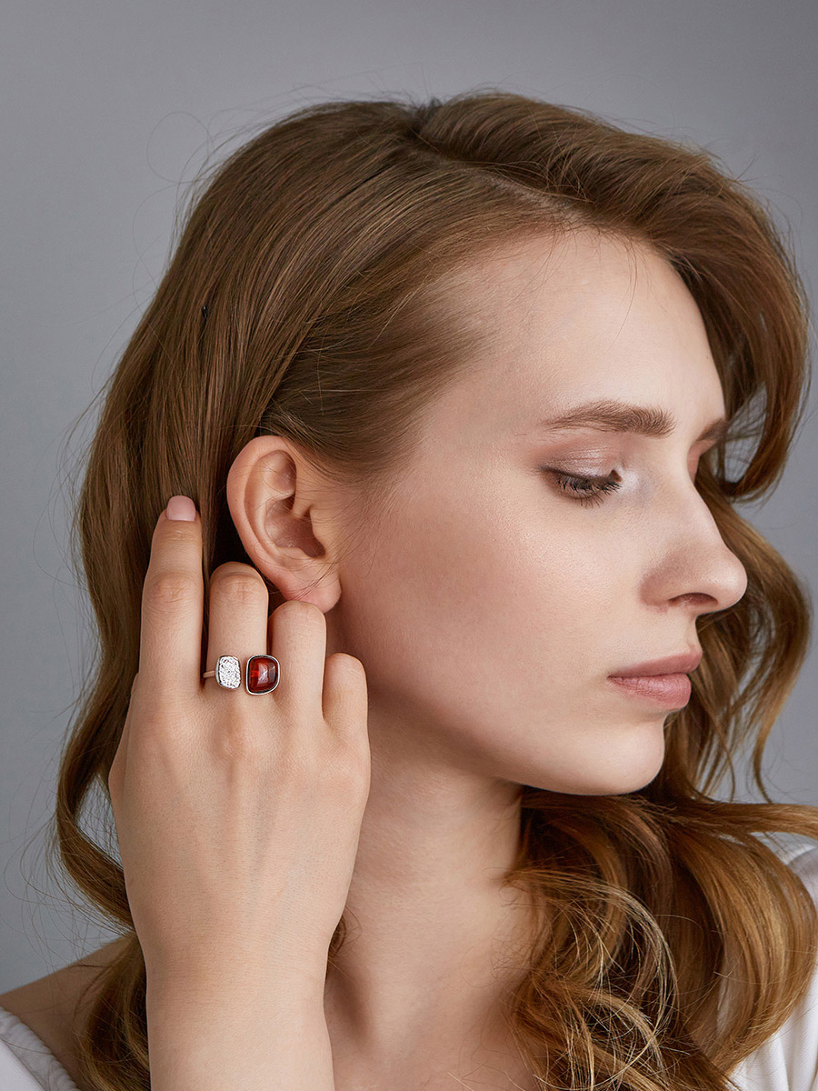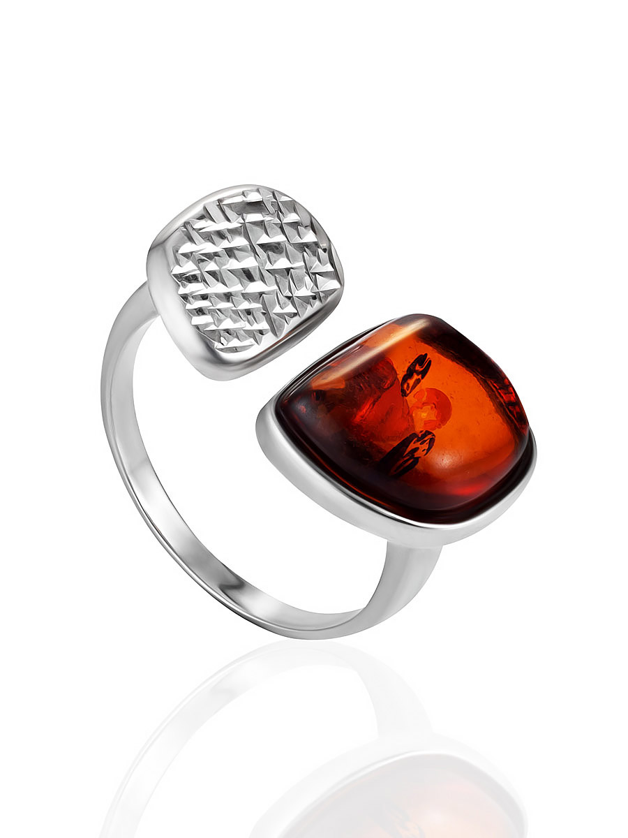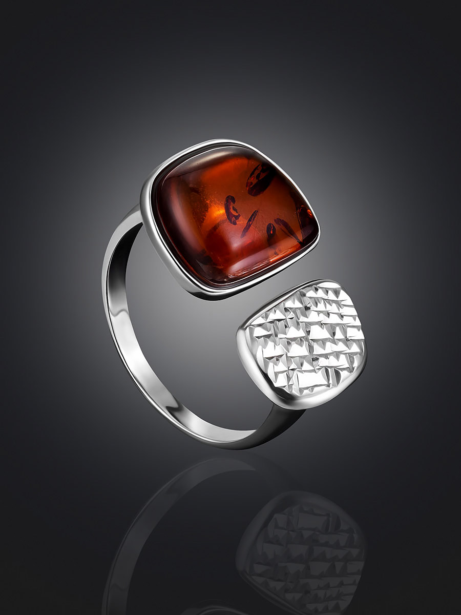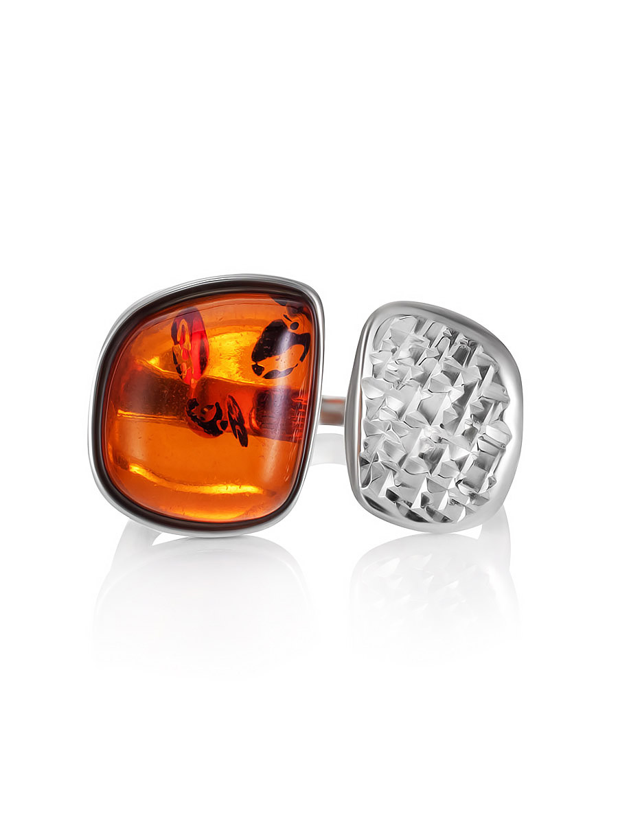 Оригинальное кольцо «Дольче Вита» с коньячным янтарём