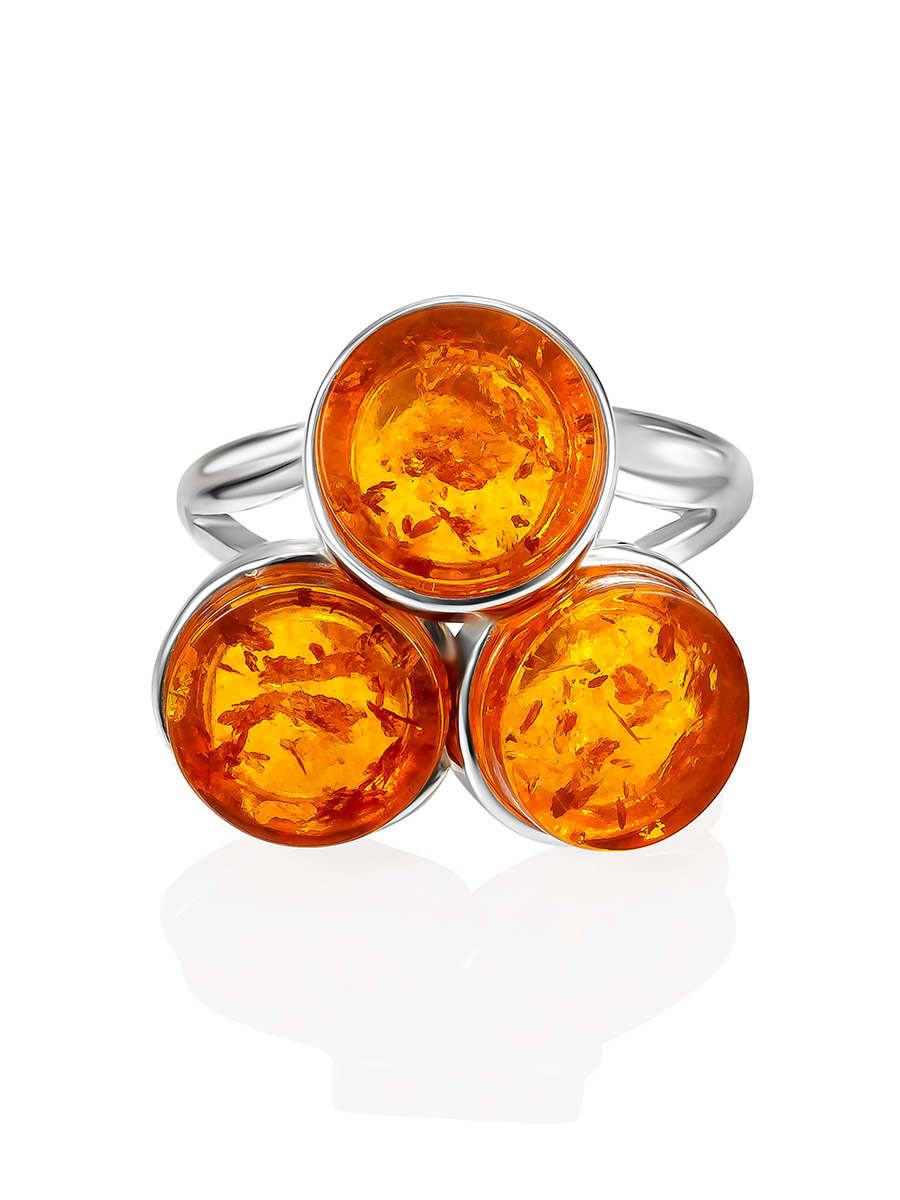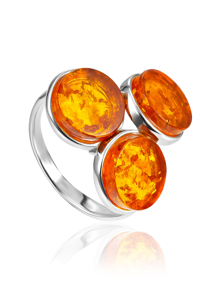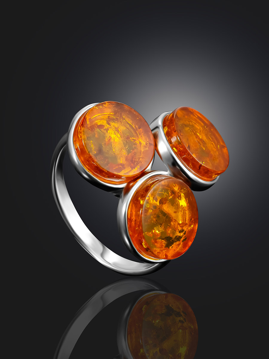 Оригинальное кольцо «Фурор» с тремя вставками из коньячного янтаря