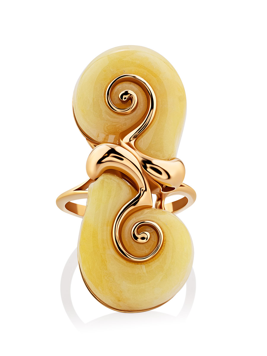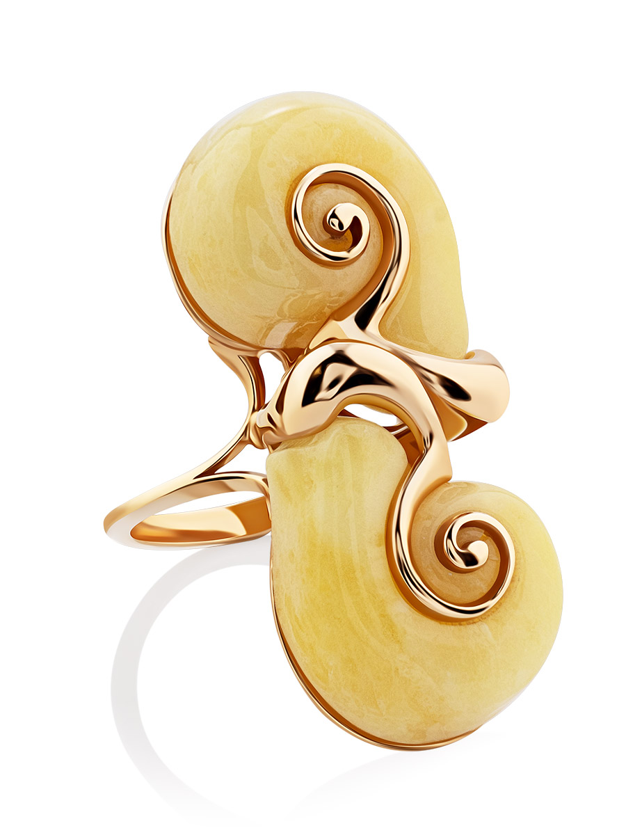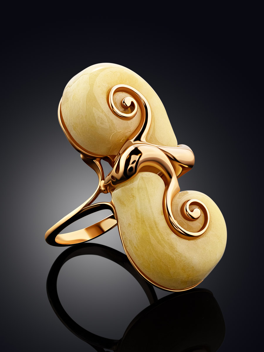 Оригинальное кольцо из натурального формованного янтаря «Улитка»
