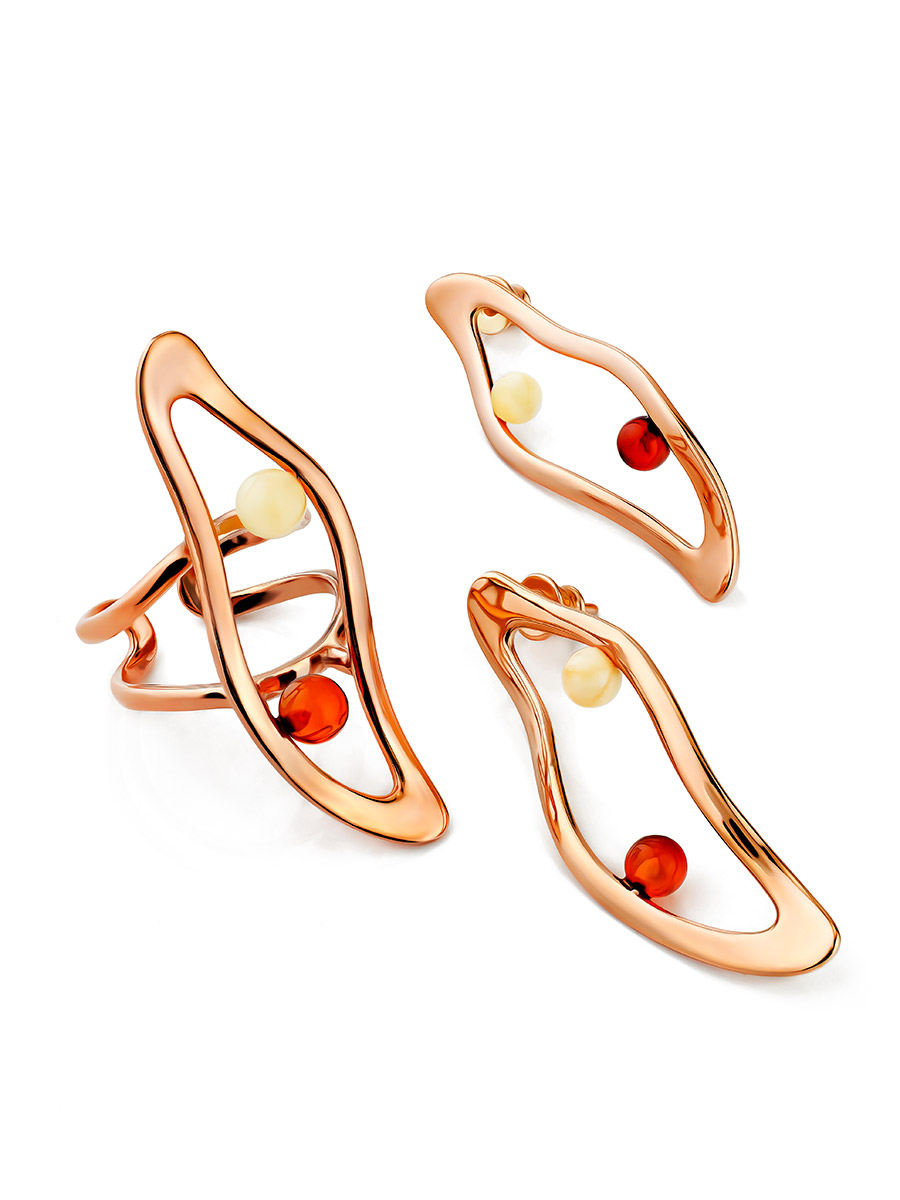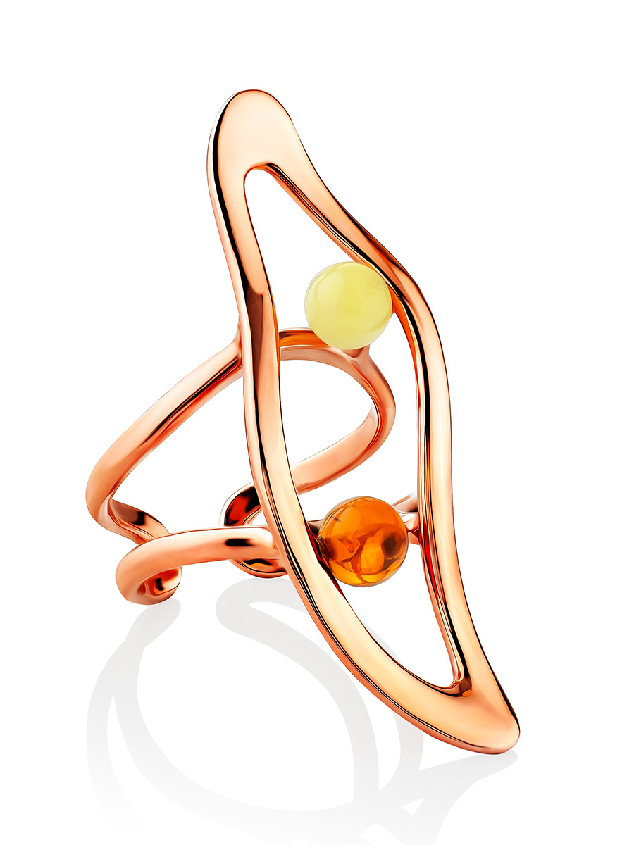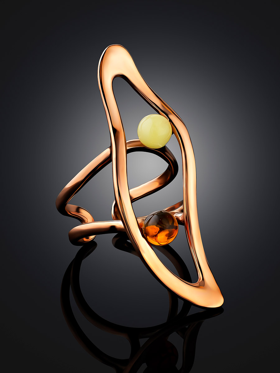 Оригинальное кольцо из позолоченного серебра и янтаря Palazzo от ifamore™