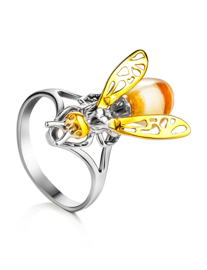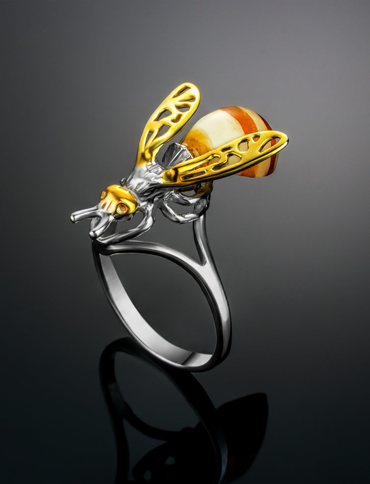 Оригинальное кольцо из янтаря «Винни Пух»