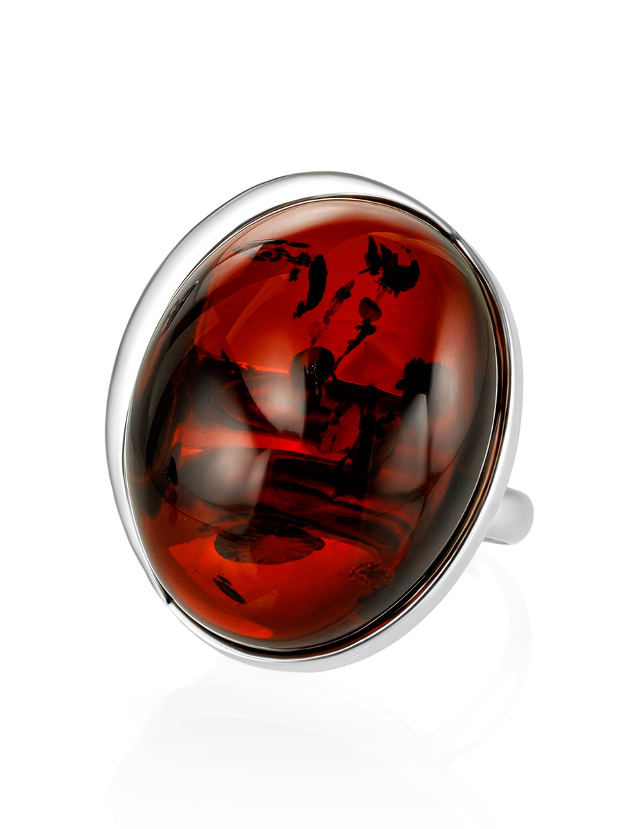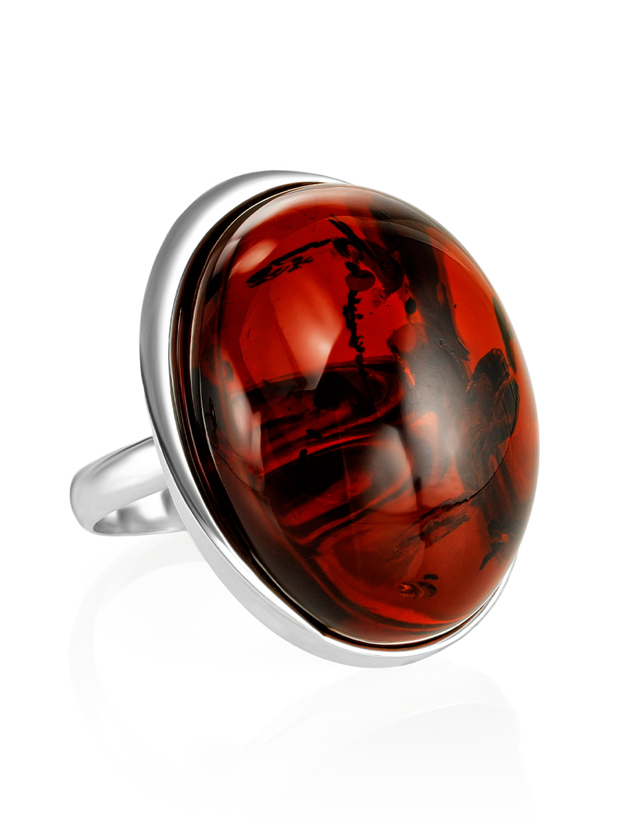 Оригинальное кольцо с натуральным вишнёвым янтарём «Лагуна»
