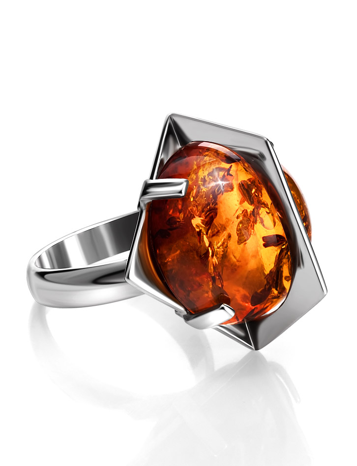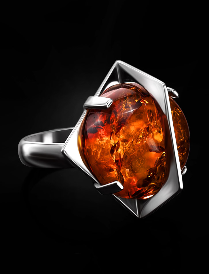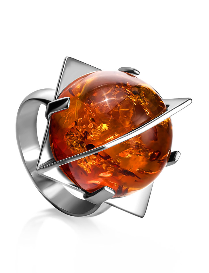 Оригинальное кольцо «Сатурн» из янтаря коньячного цвета