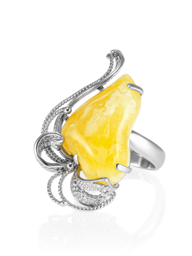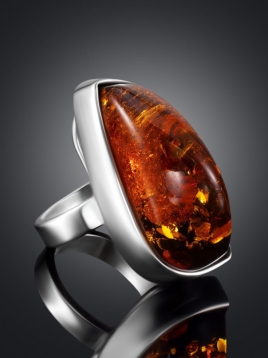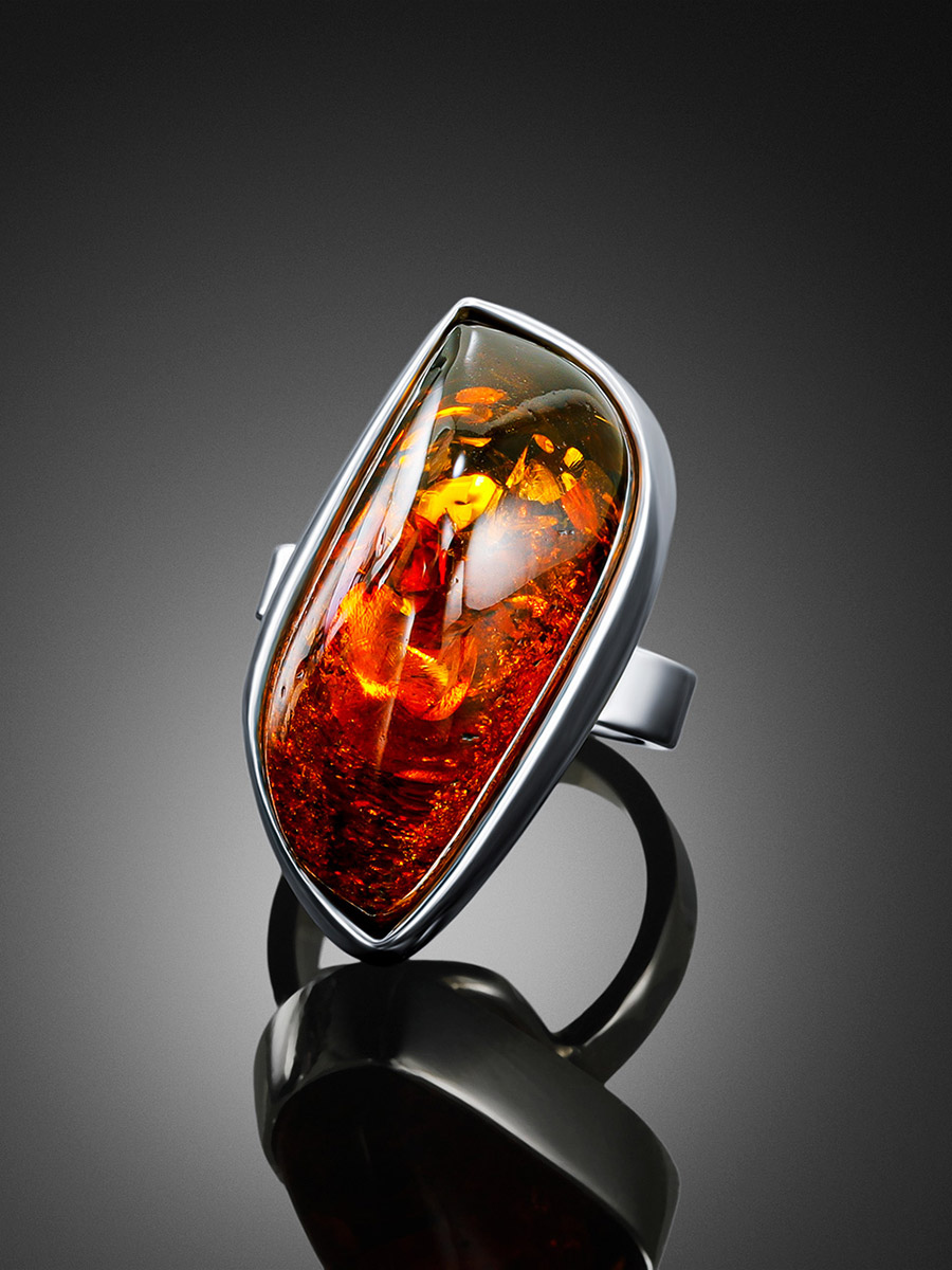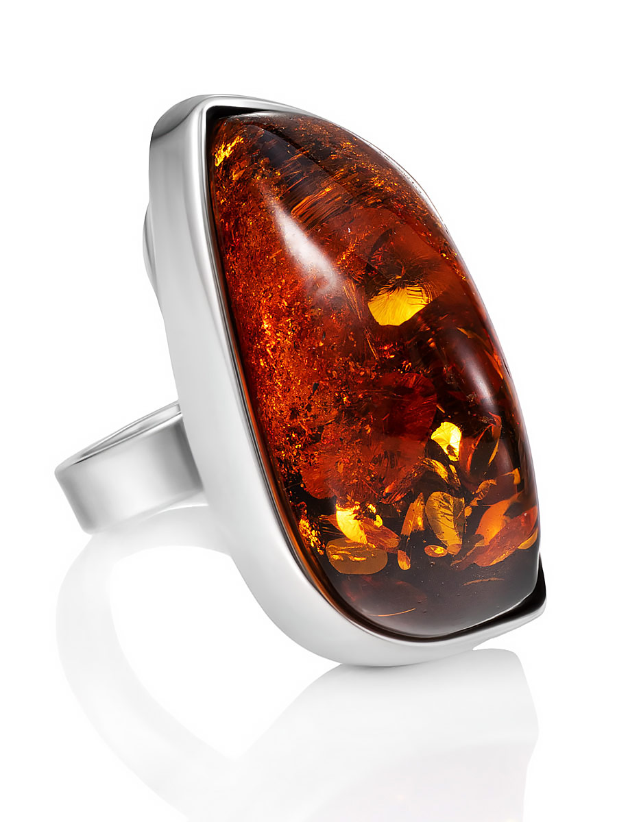 Оригинальное кольцо со вставкой из коньячного янтаря «Глянец»