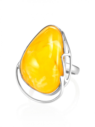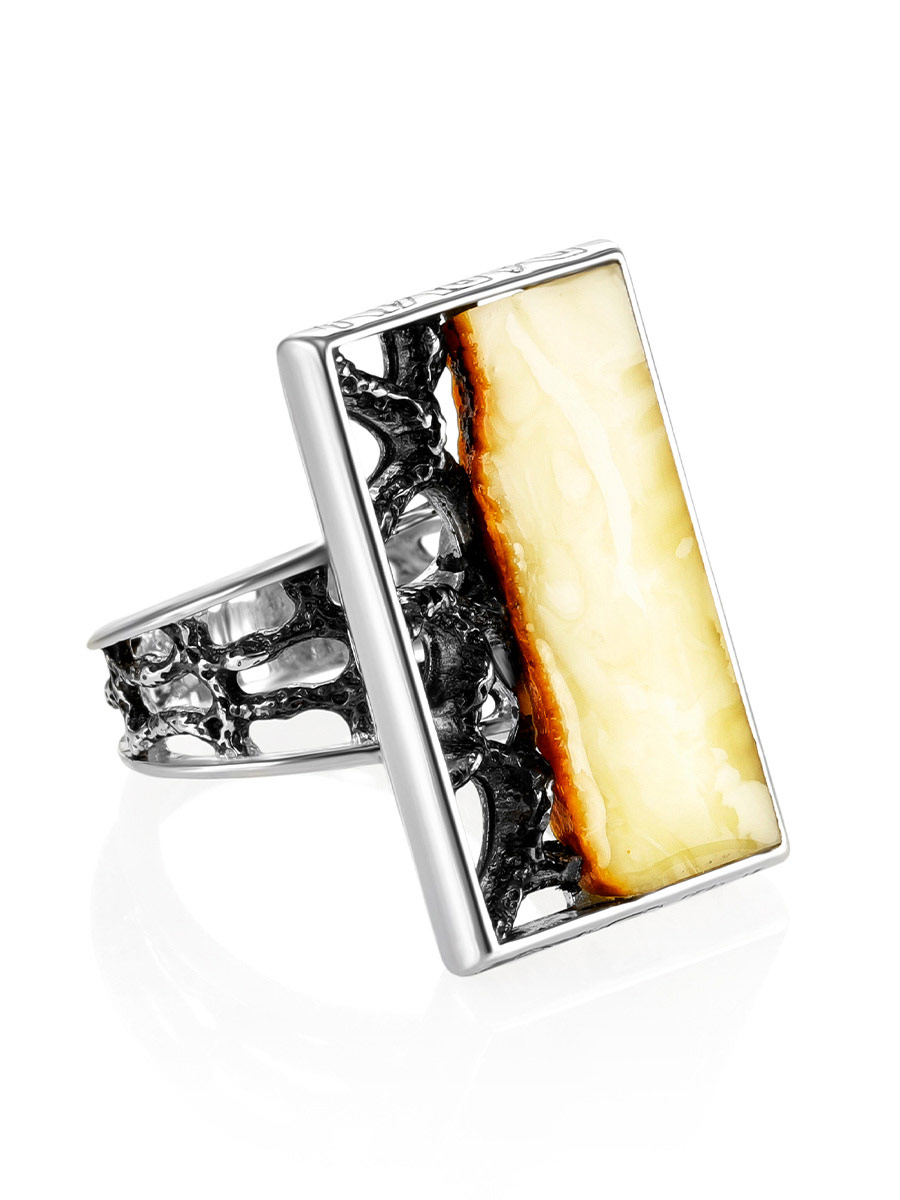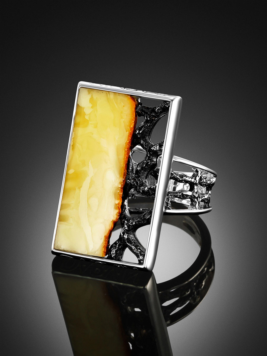 Оригинальное кольцо со вставкой из натурального янтаря «Модерн»