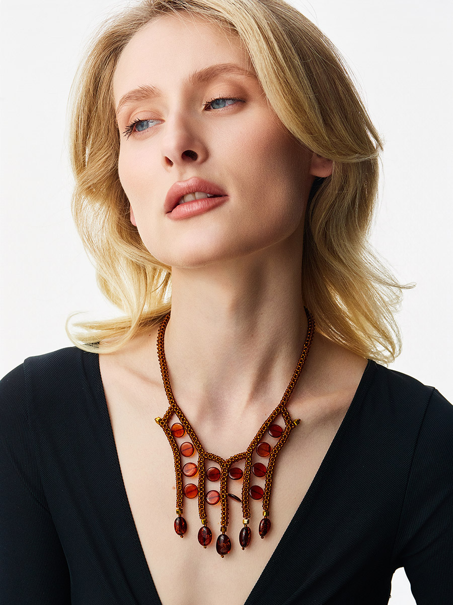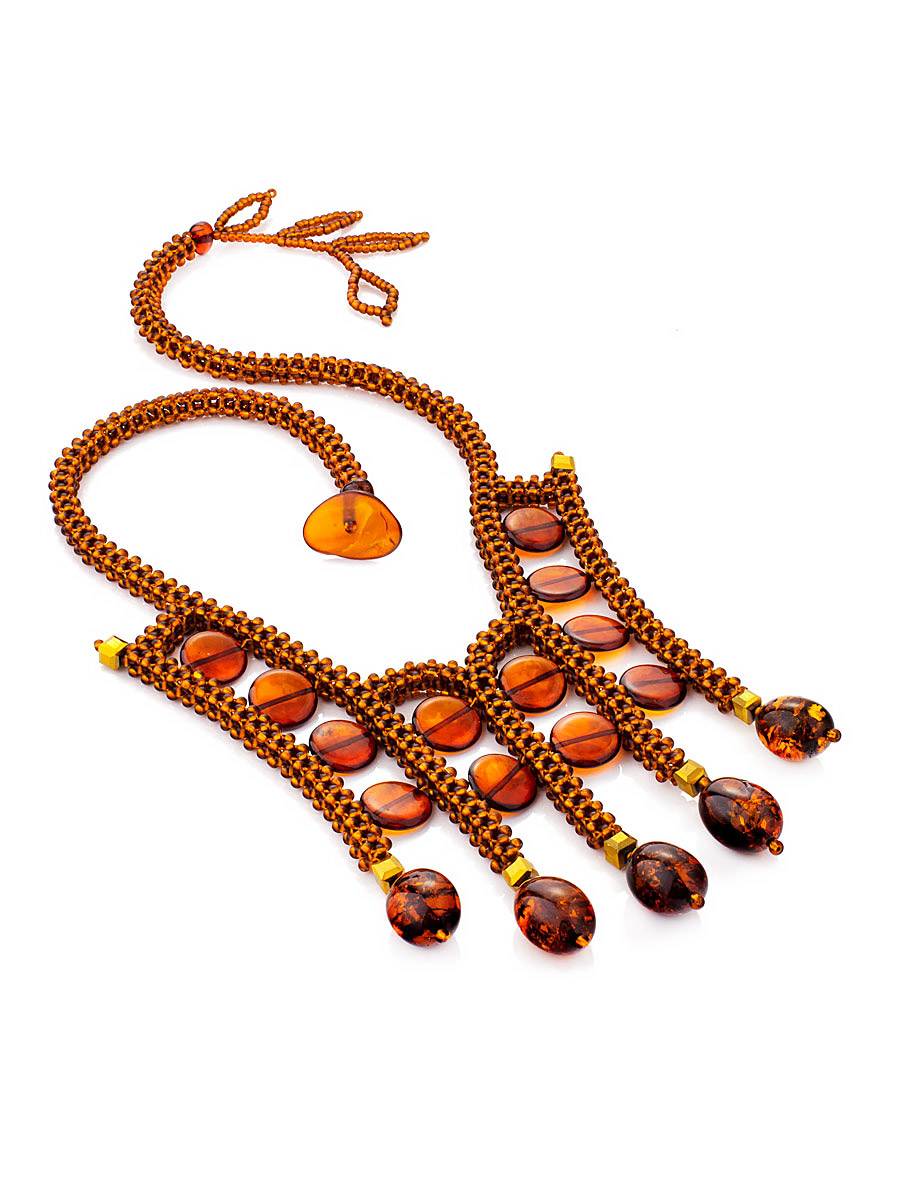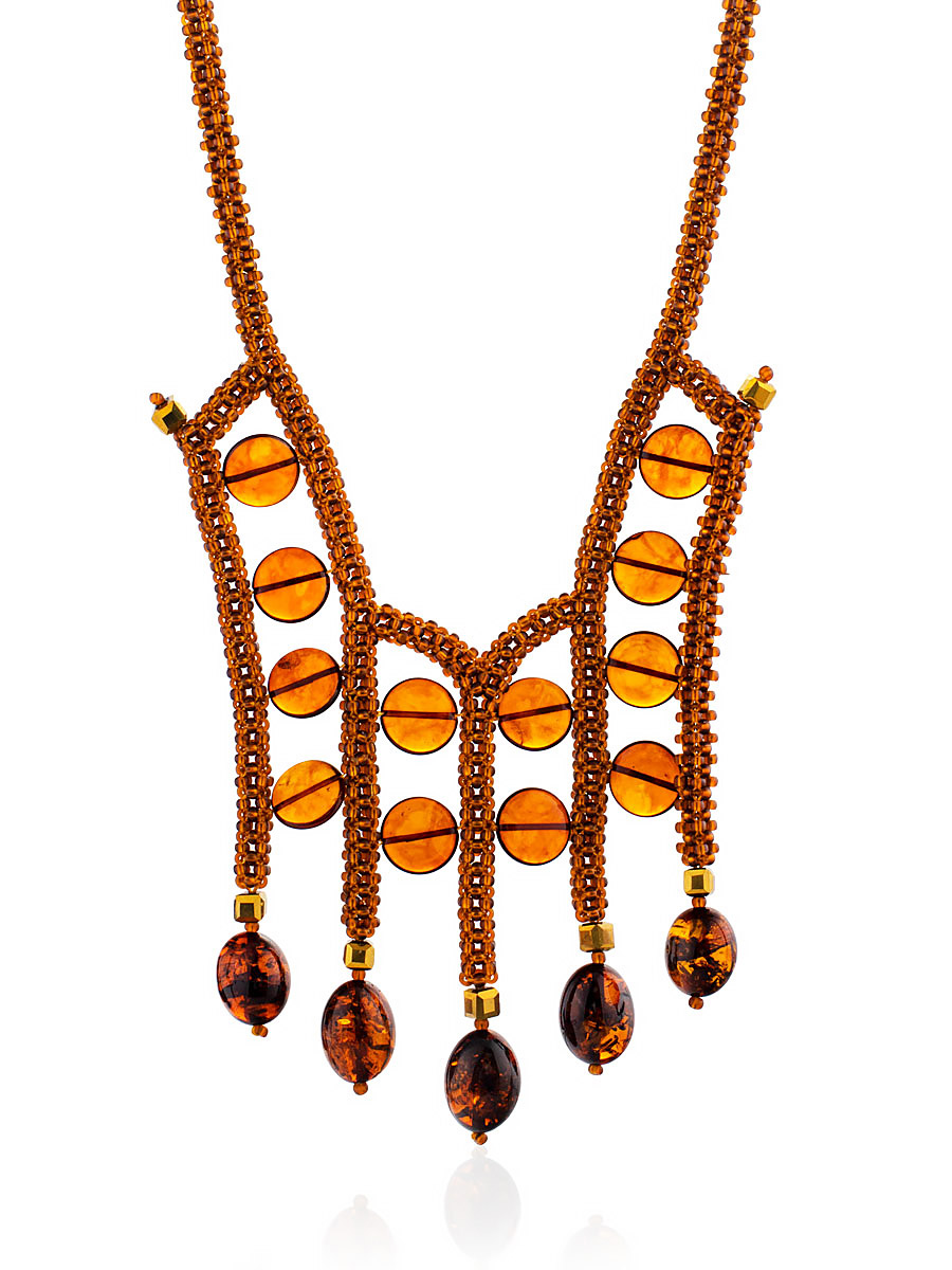Оригинальное колье из бисера и янтаря «Лукоморье»